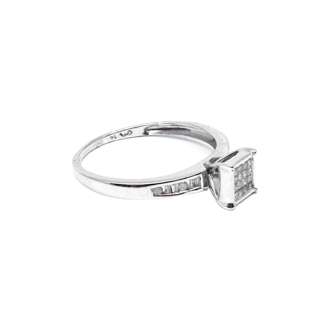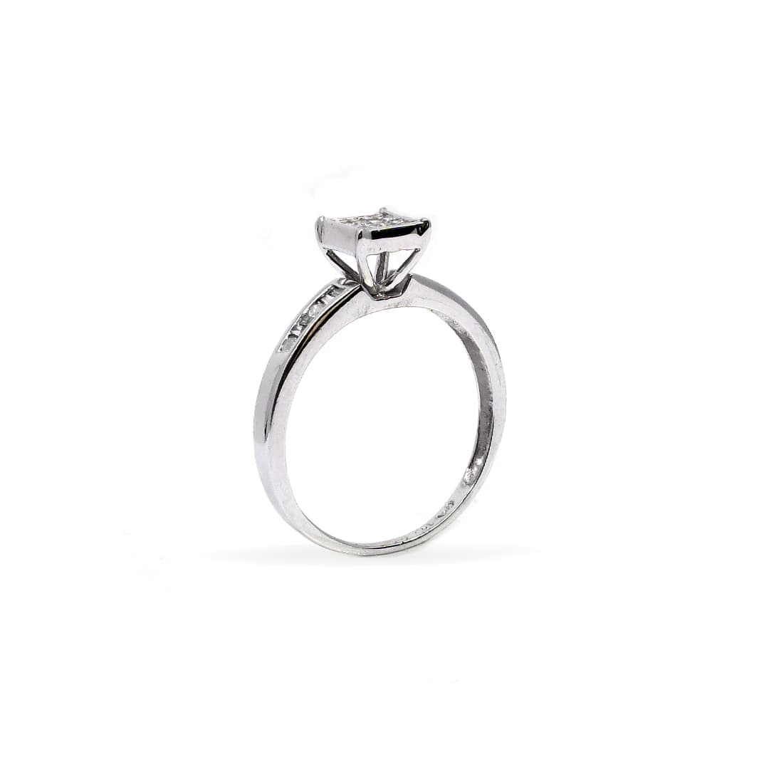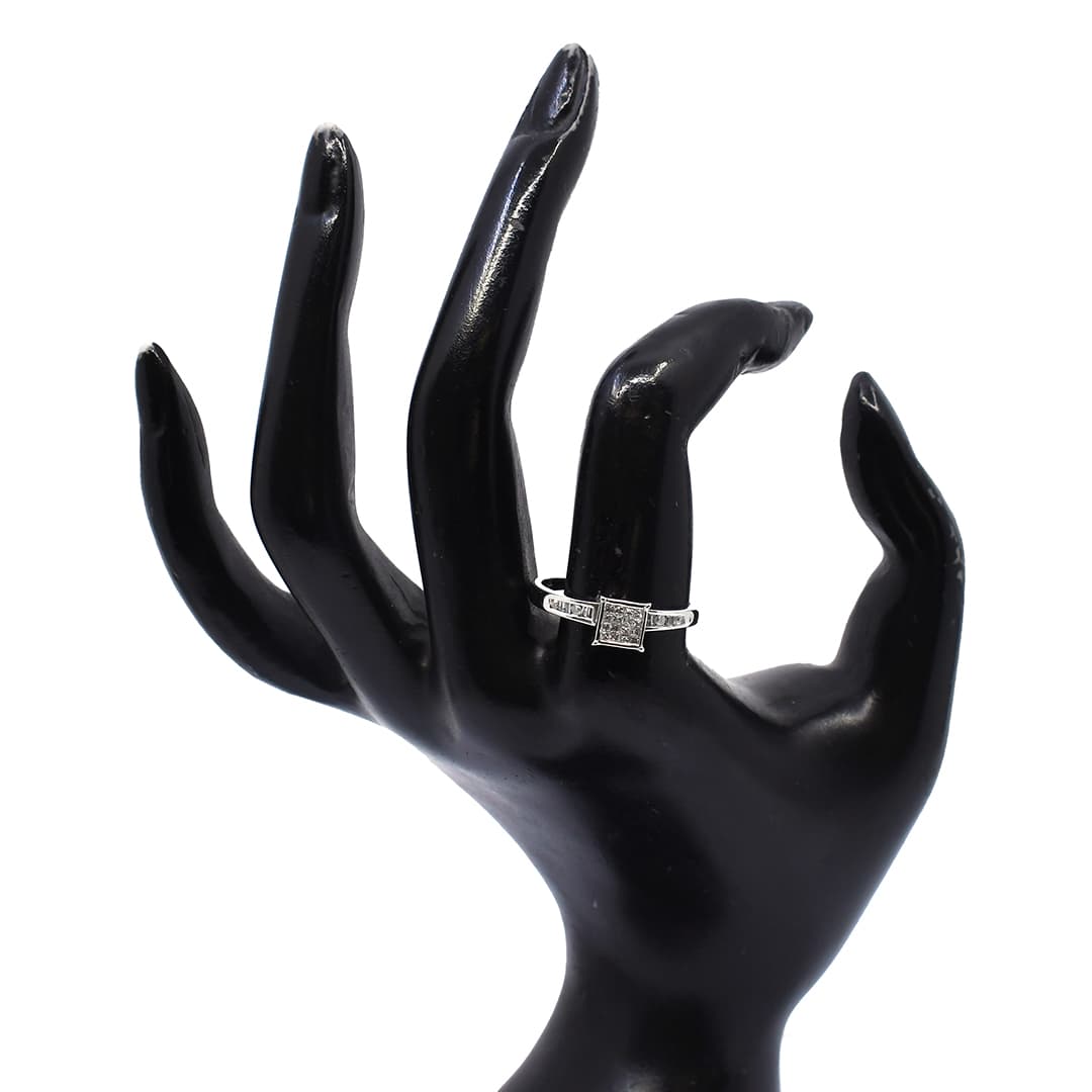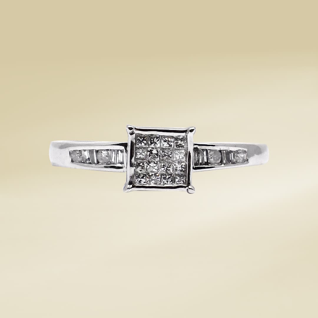 14K White Gold Ladies’ Ring with Princess Cut, Baguette, and Round Cut, Accented Diamonds