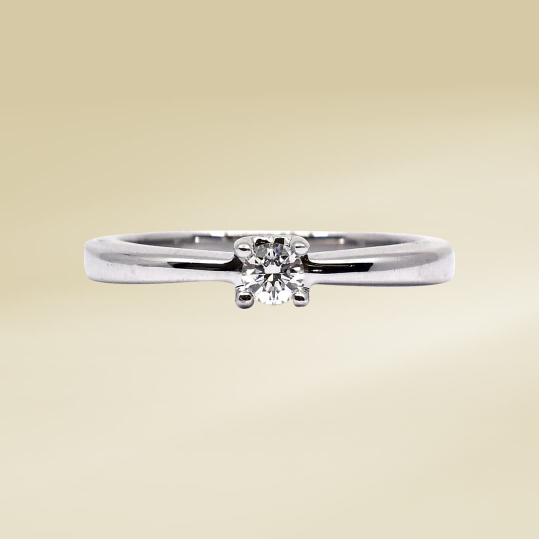 14K White Gold Ladies’ Ring with Round Cut, Single Stone Diamonds