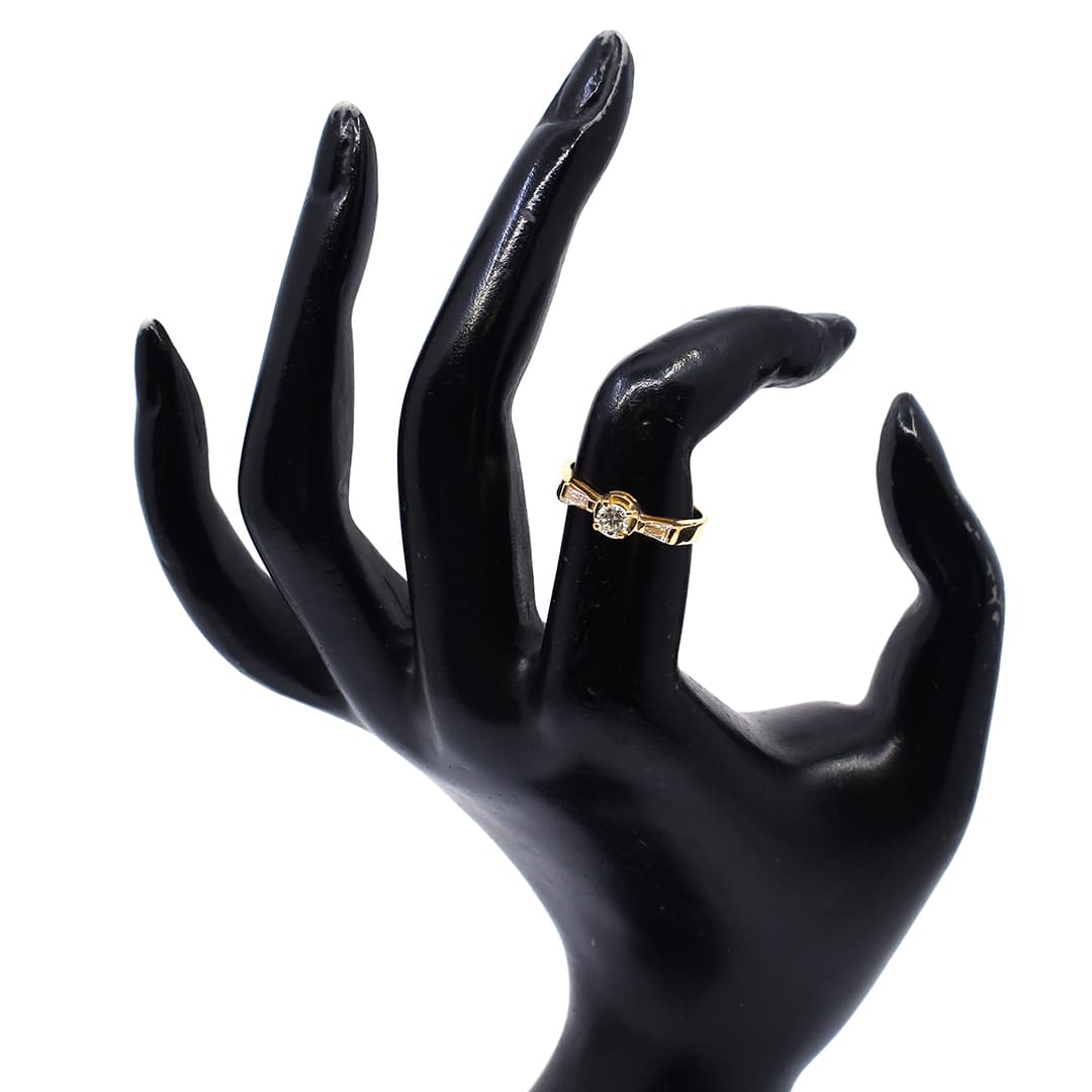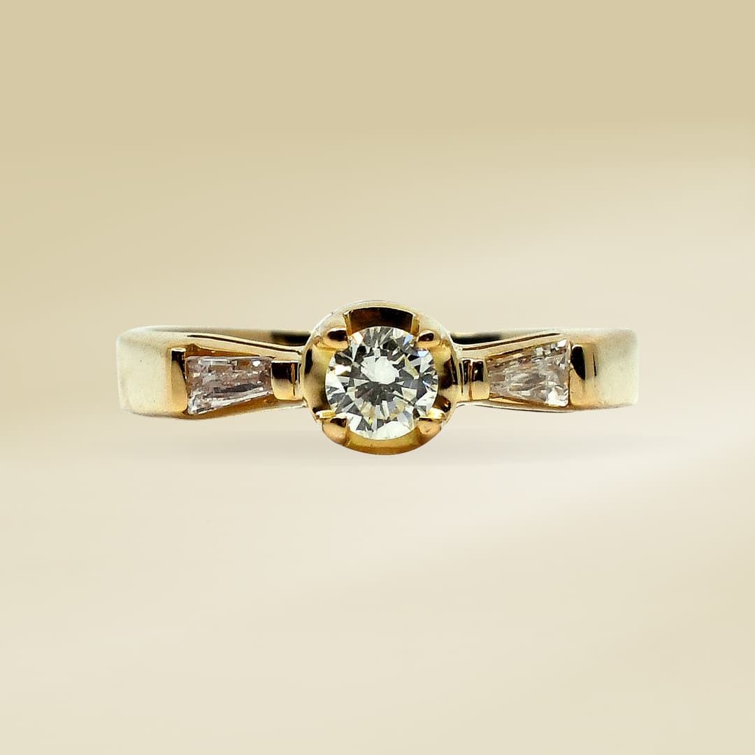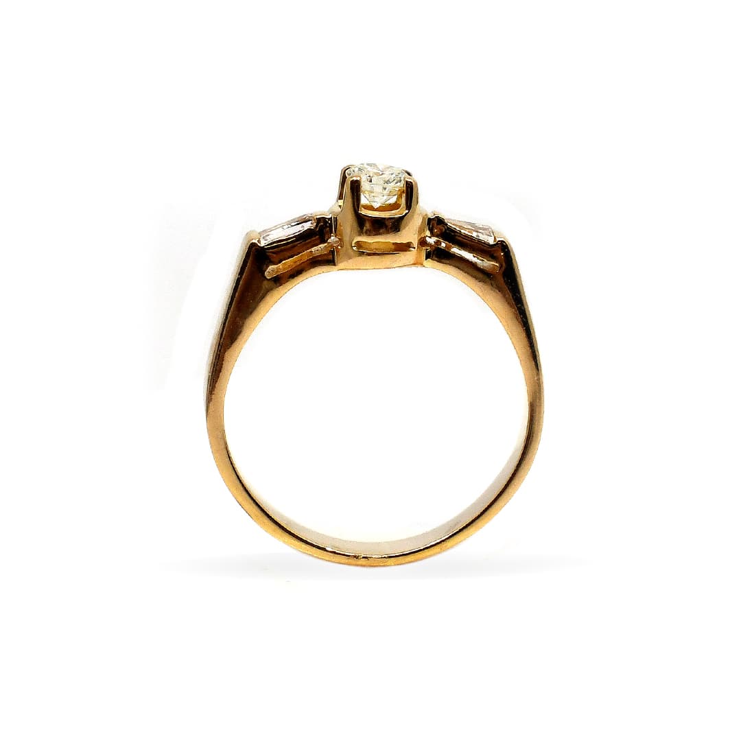14K Yellow Gold Ladies’ Ring with Baguette and Round Cut, Two Stone Diamonds