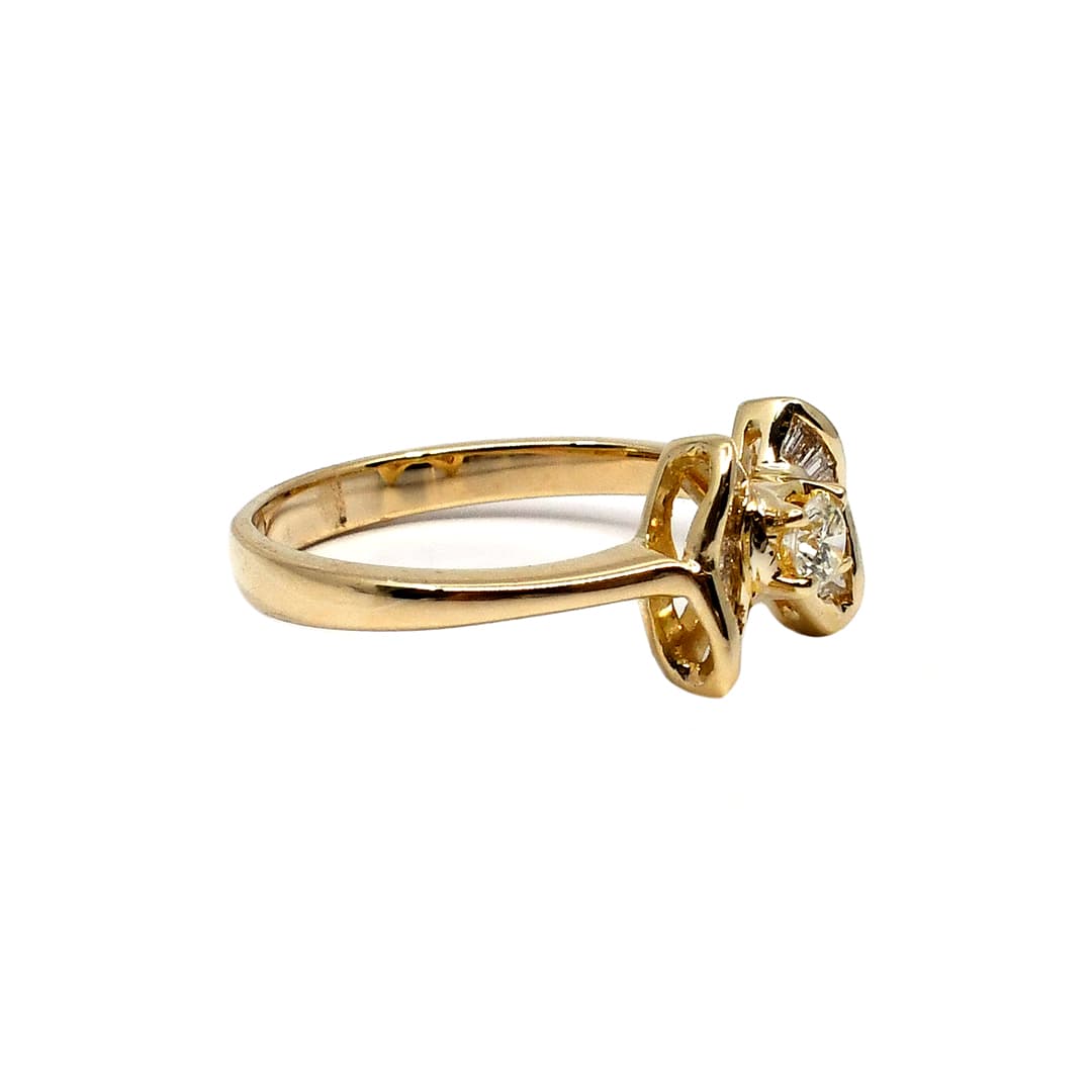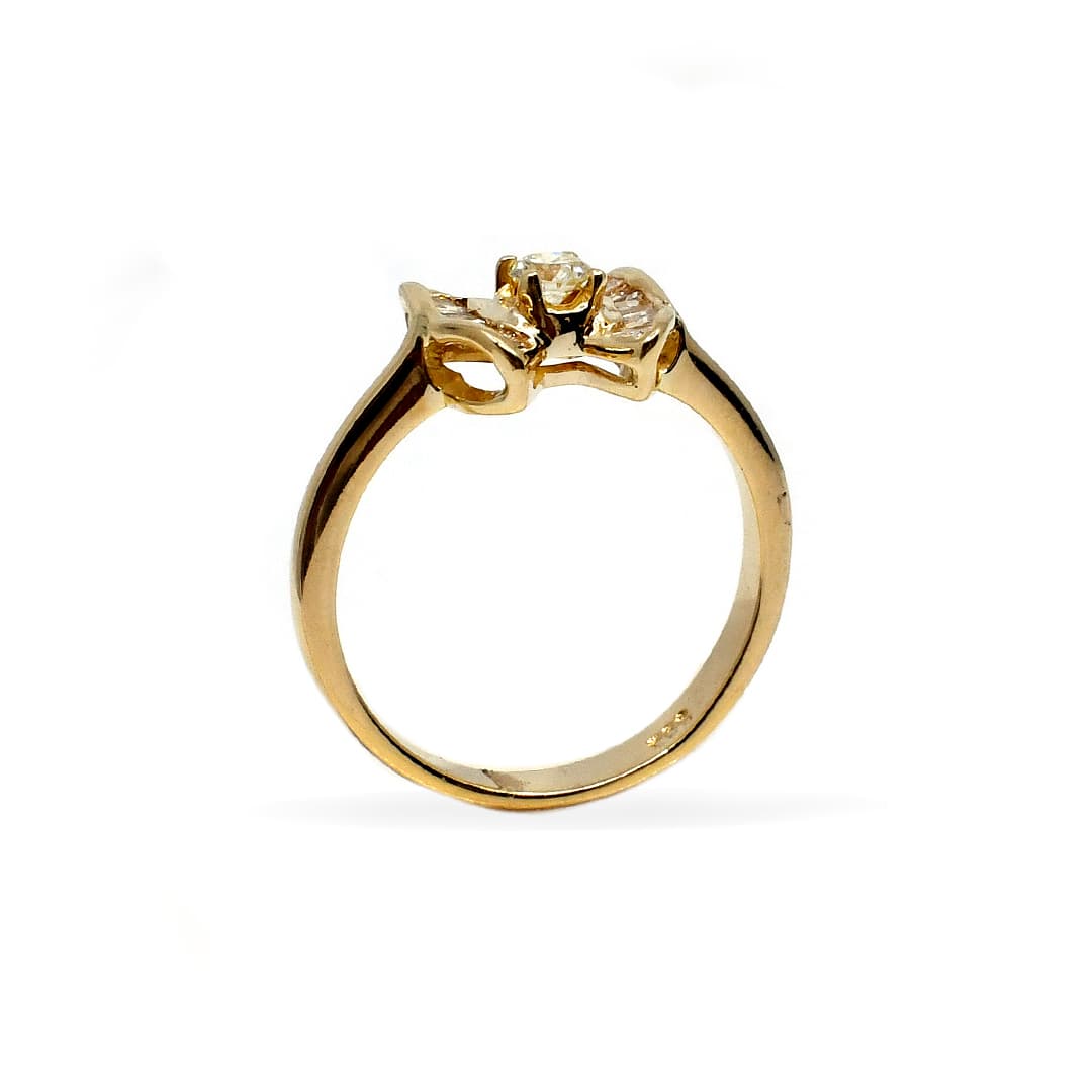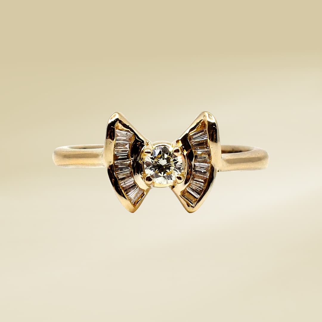 14K Yellow Gold Ladies’ Ring with Round Cut, Baguette Cut, Two Stone Diamonds
