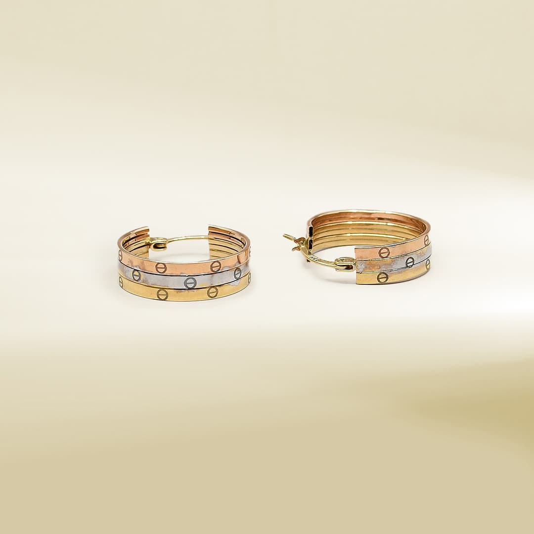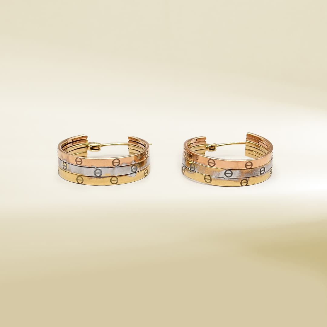 18K Tri-Color Brand Inspired Hoop Earrings