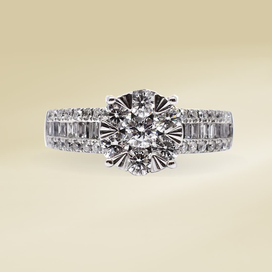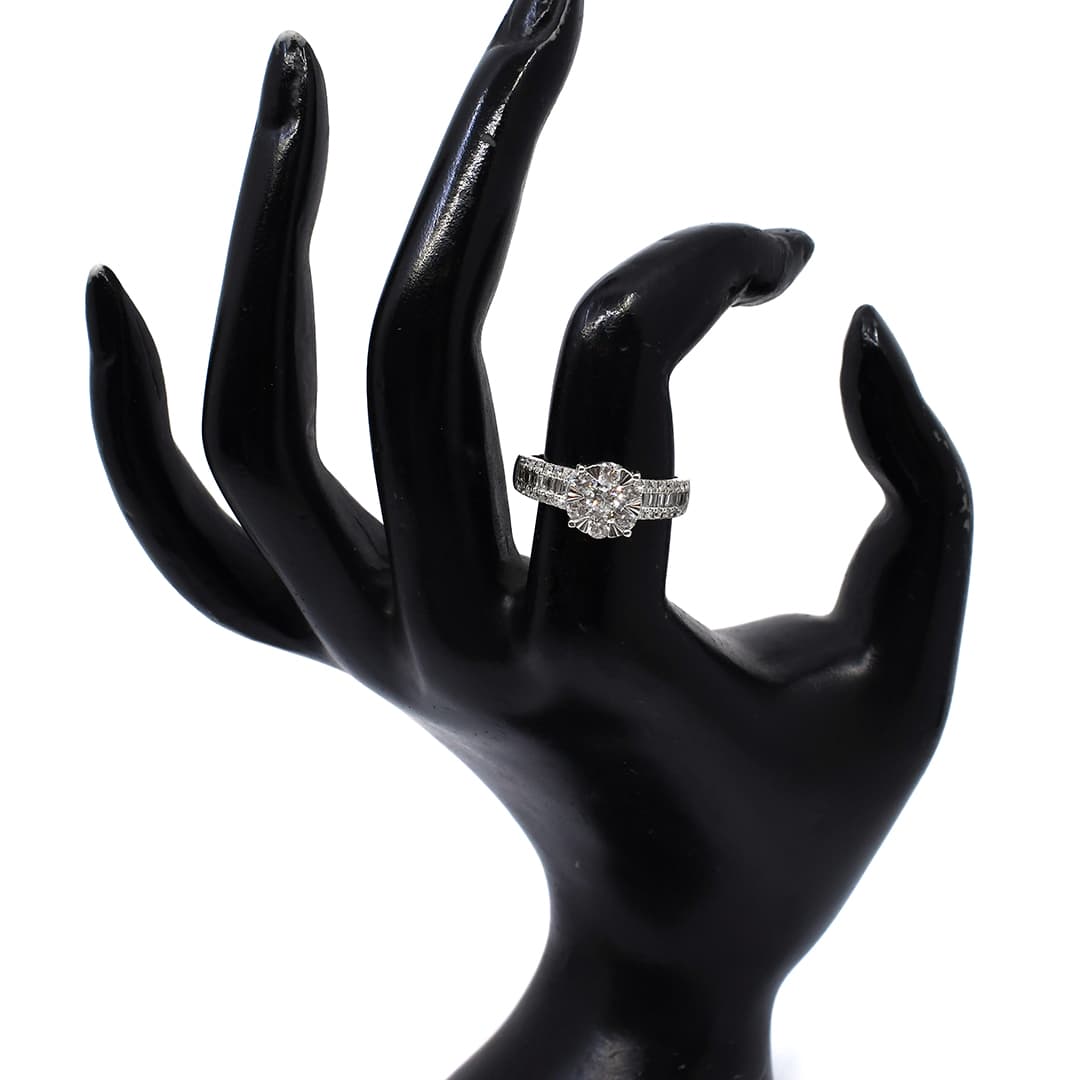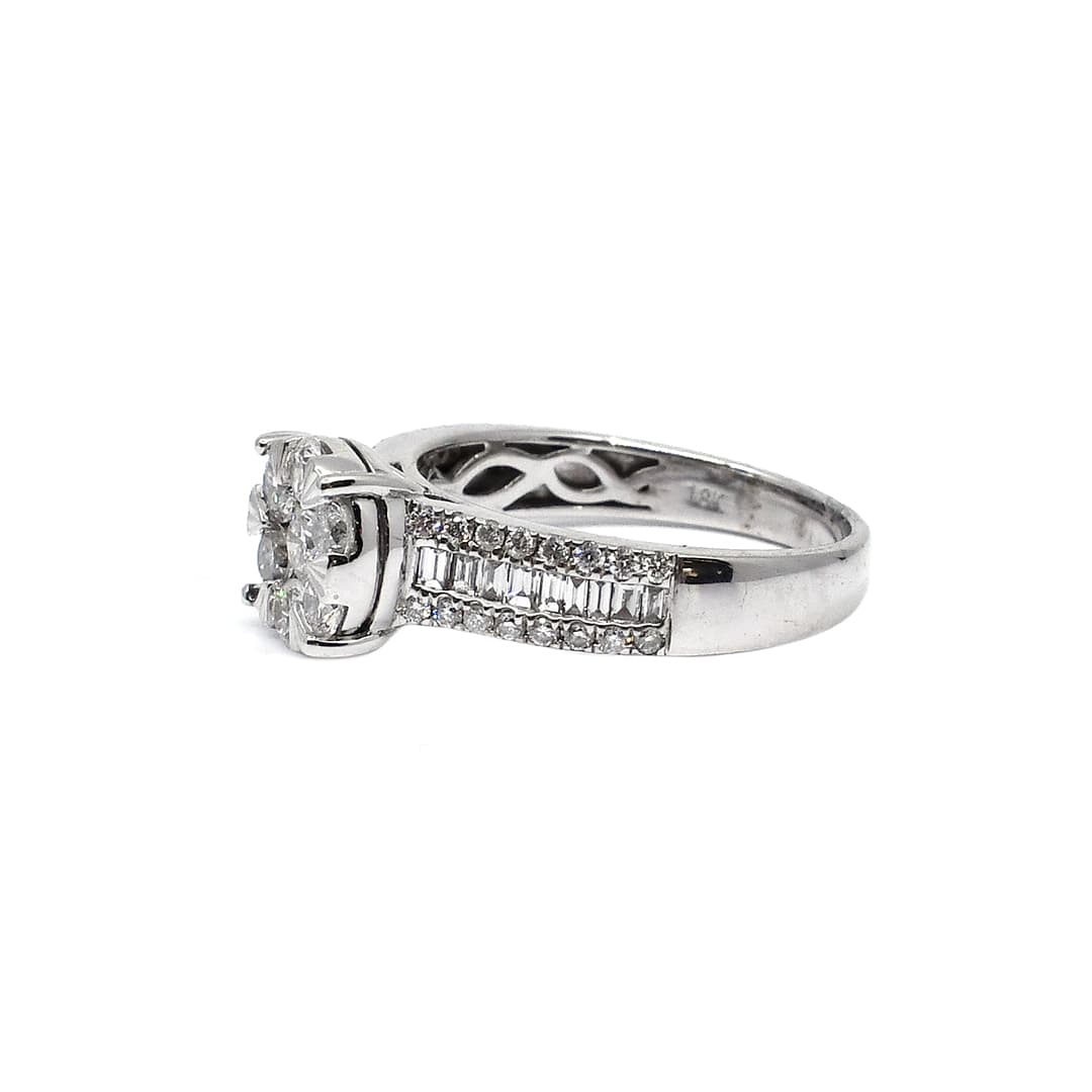 18K White Gold Ladies’ Ring with Accented, Baguette and Round Cut Diamonds