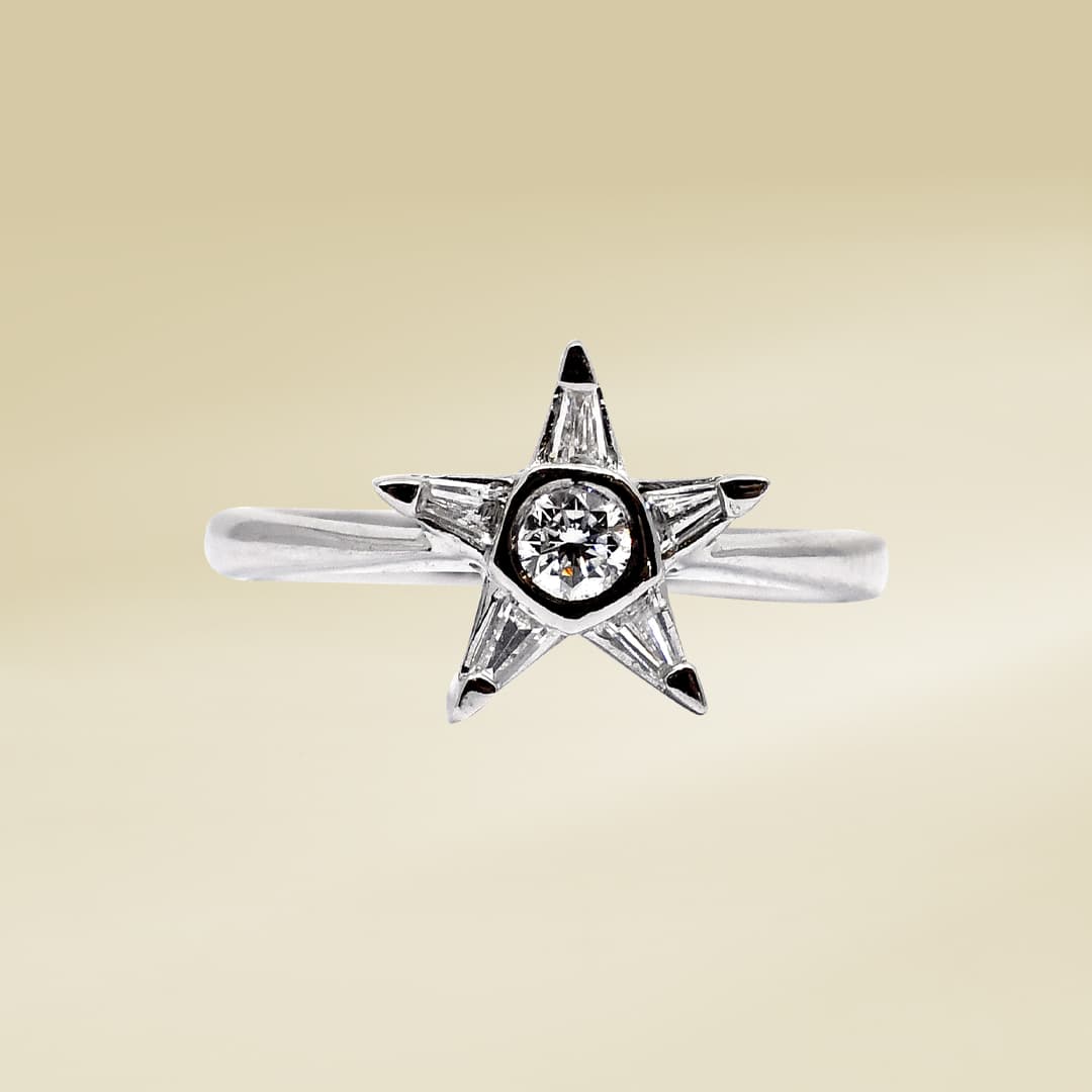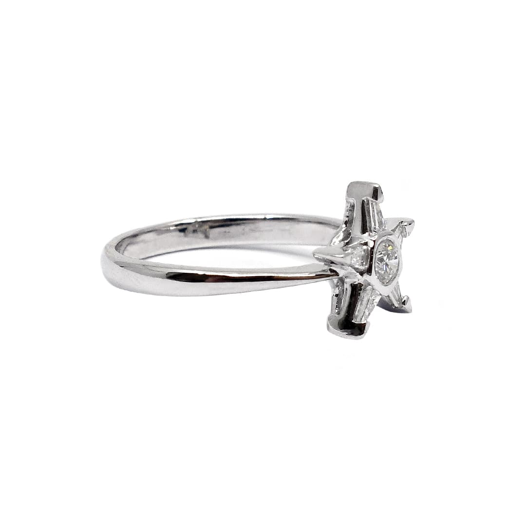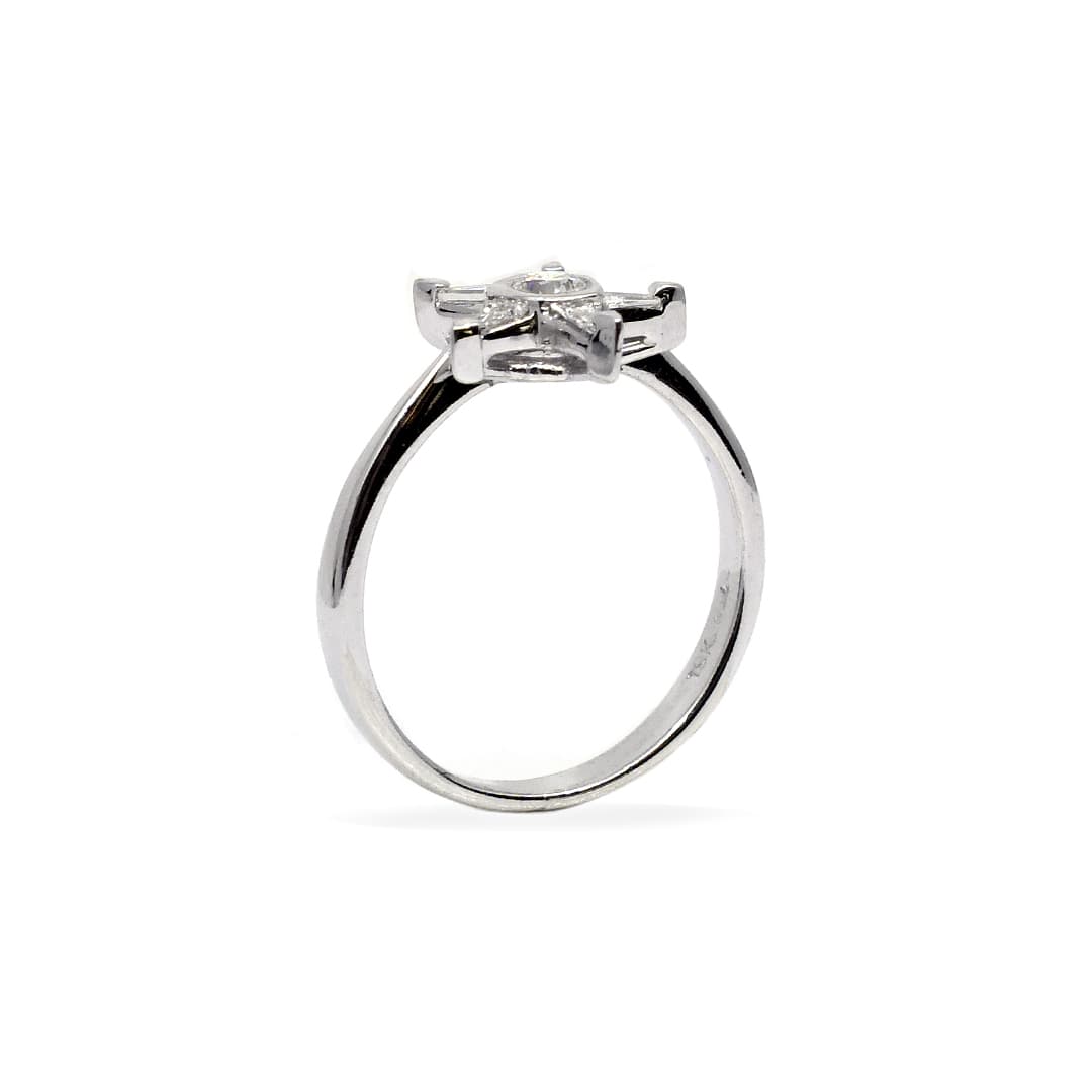 18K White Gold Ladies’ Ring with Baguette and Round Cut Diamonds