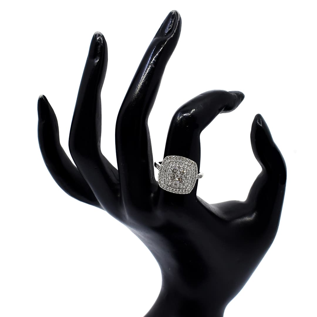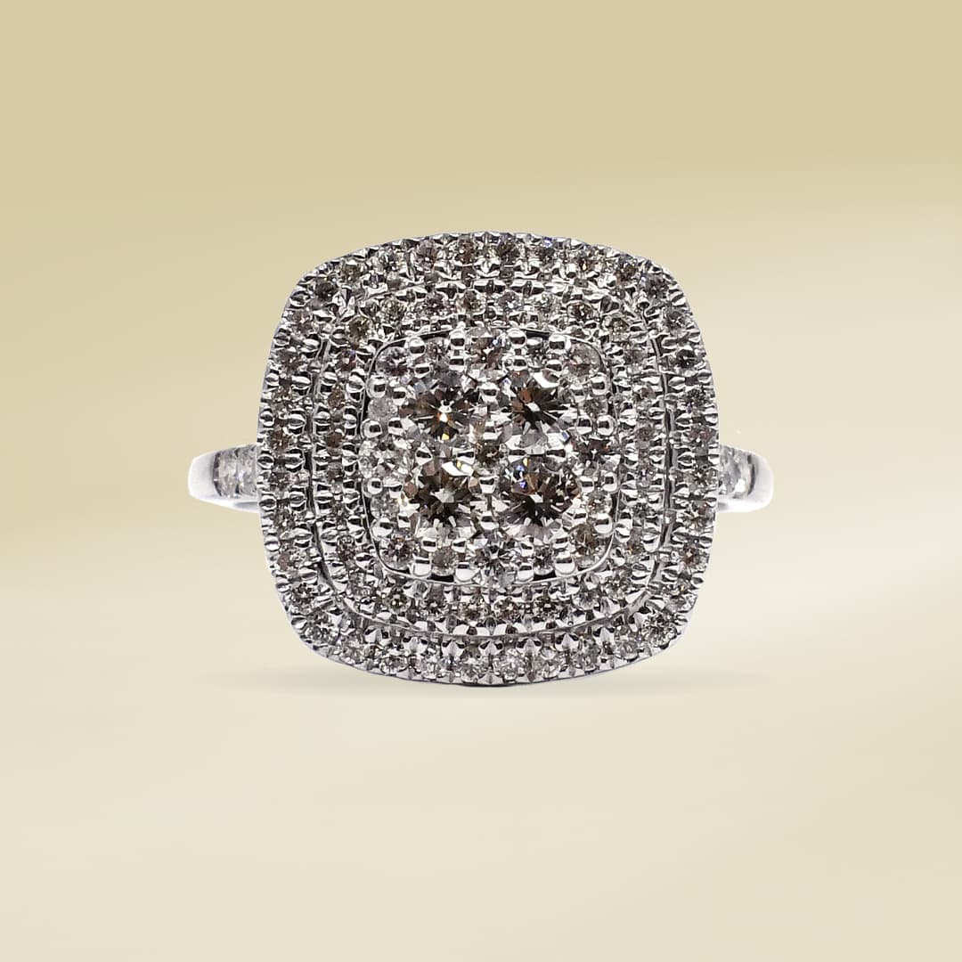 18K White Gold Ladies’ Ring with Round Cut and Cluster Halo Diamonds