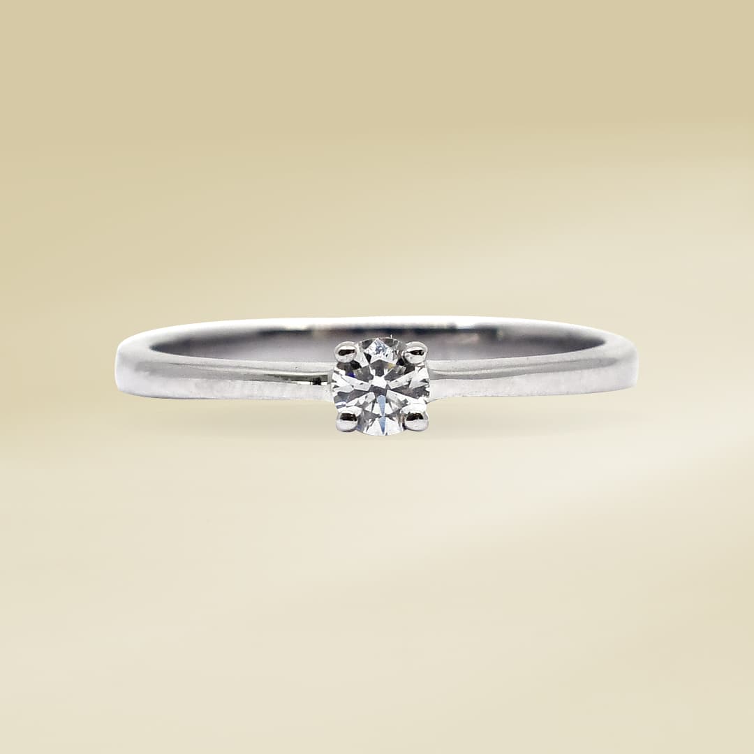 18K White Gold Ladies’ Ring with Round Cut, Single Stone Diamonds