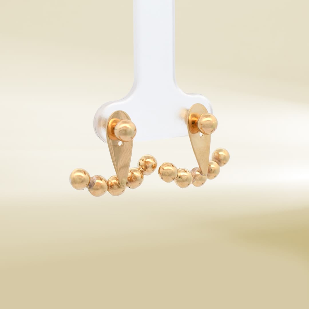 18K Yellow Gold Ball Design Ear Jacket Earrings