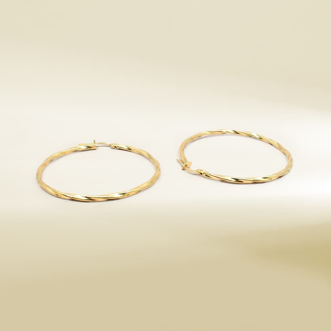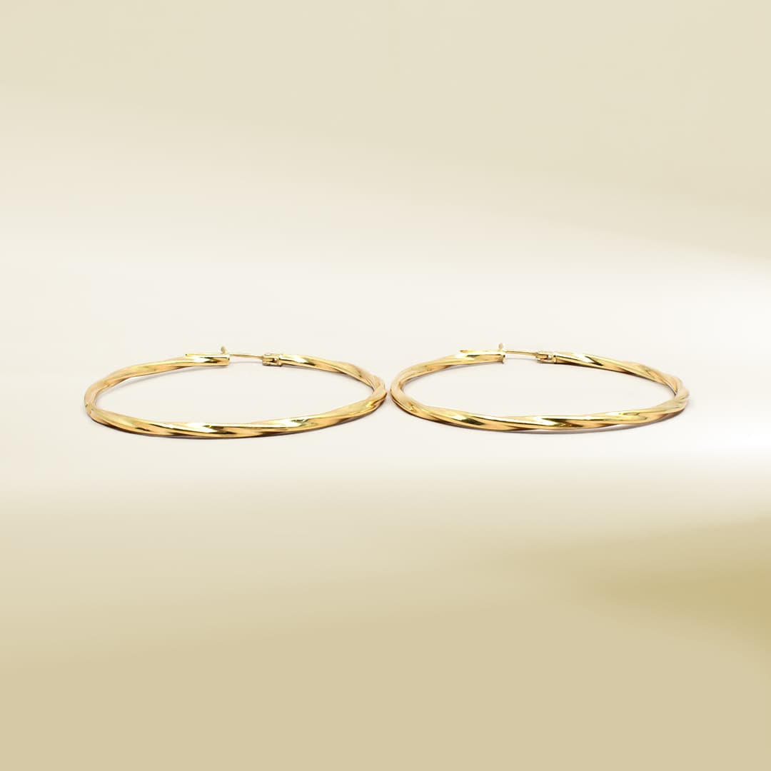 18K Yellow Gold Big Twisted Hoop Earrings