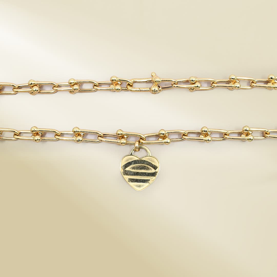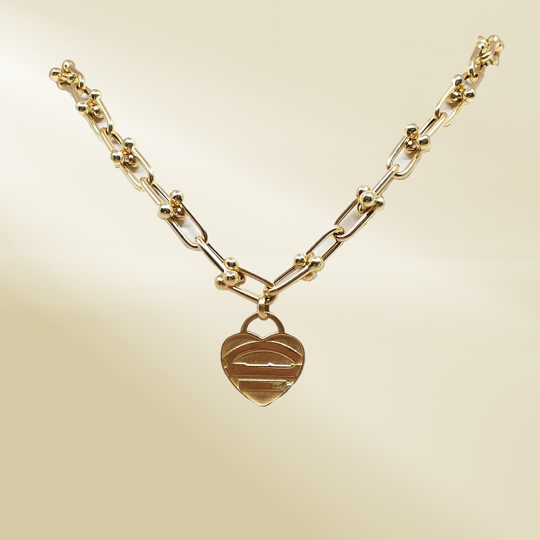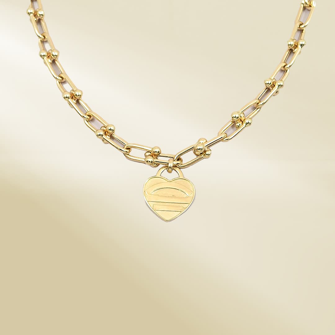 18K Yellow Gold Brand-Inpired Necklace with Heart Pendant