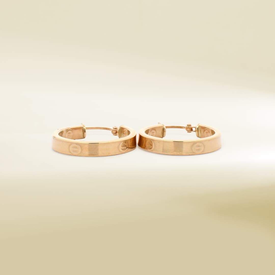 18K Yellow Gold Brand-Inspired Hoop Design Earrings