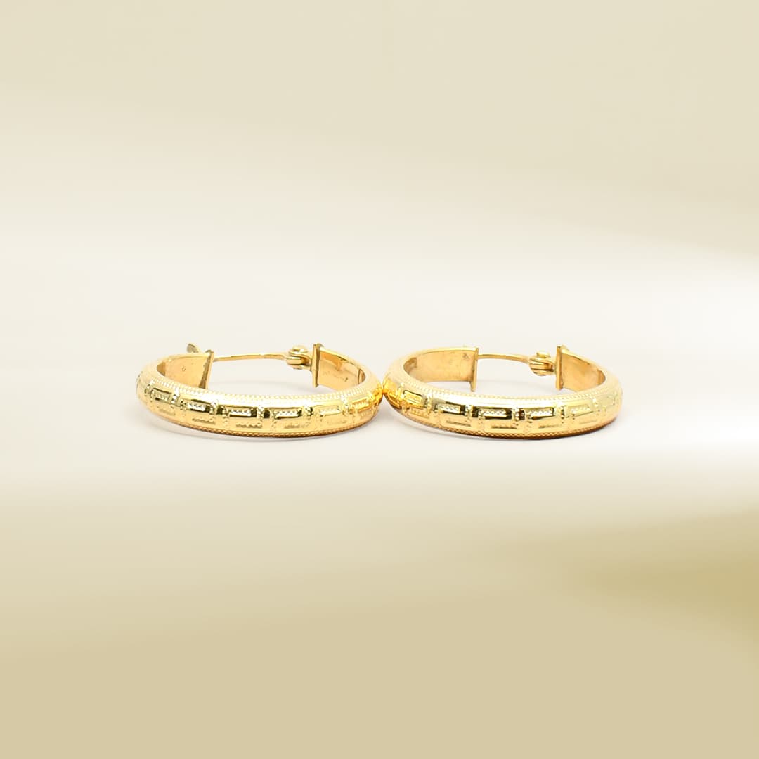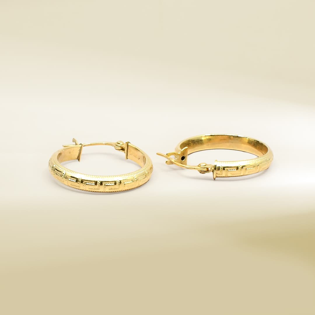 18K Yellow Gold Brand Inspired Hoop Earrings