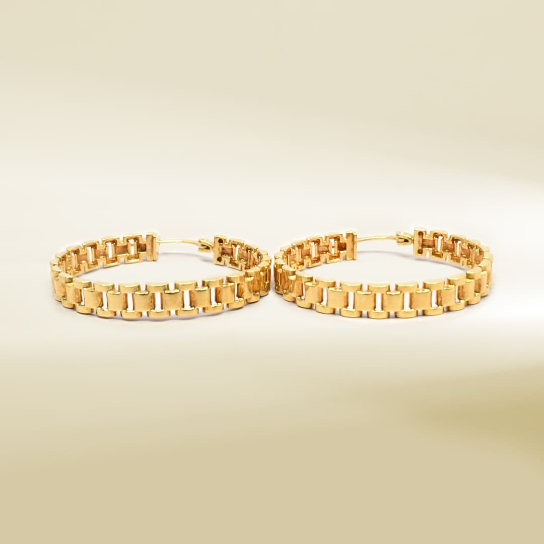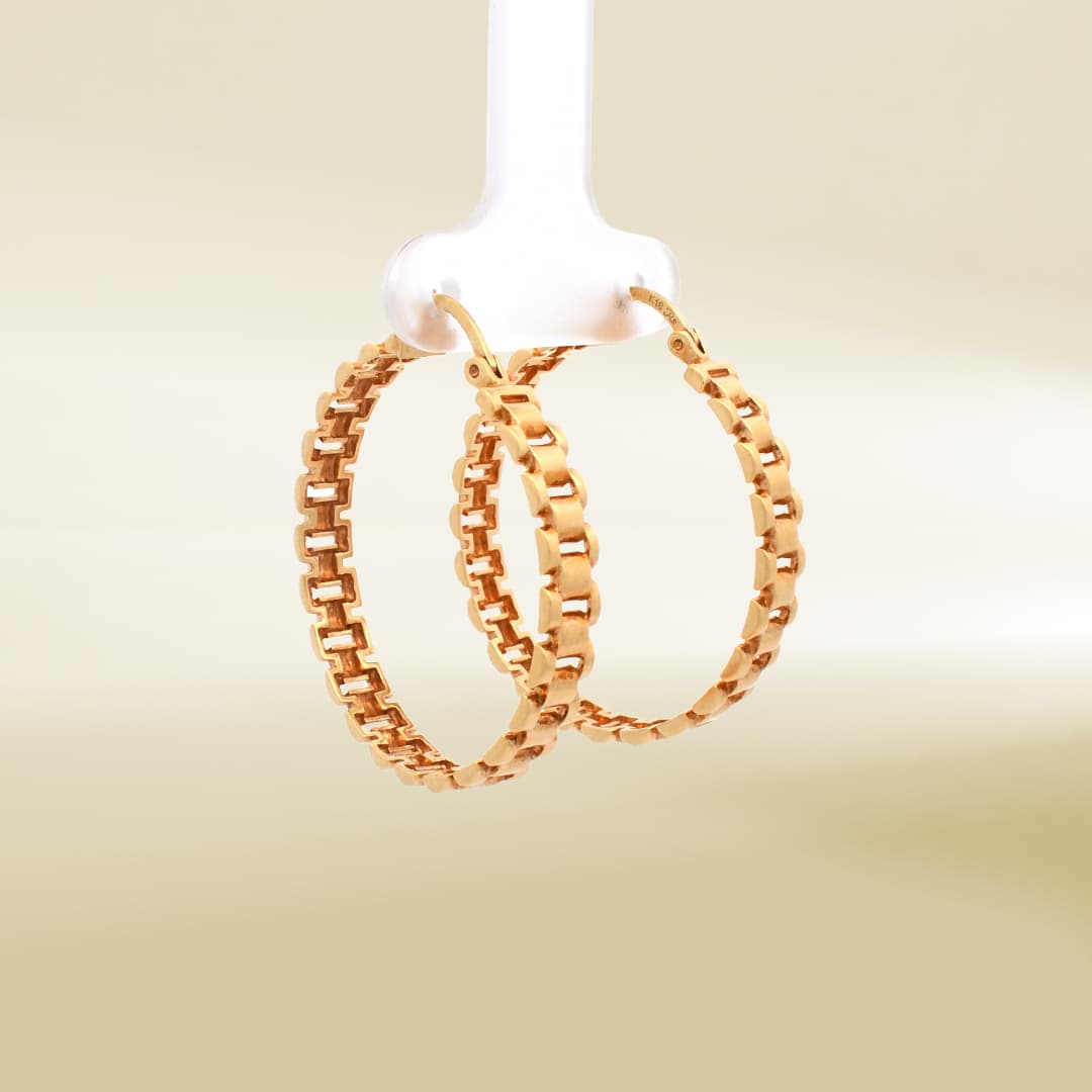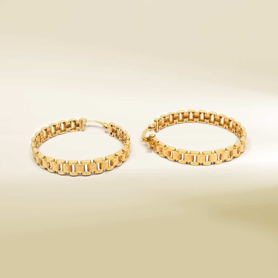 18K Yellow Gold Brand Inspired Hoop Earrings