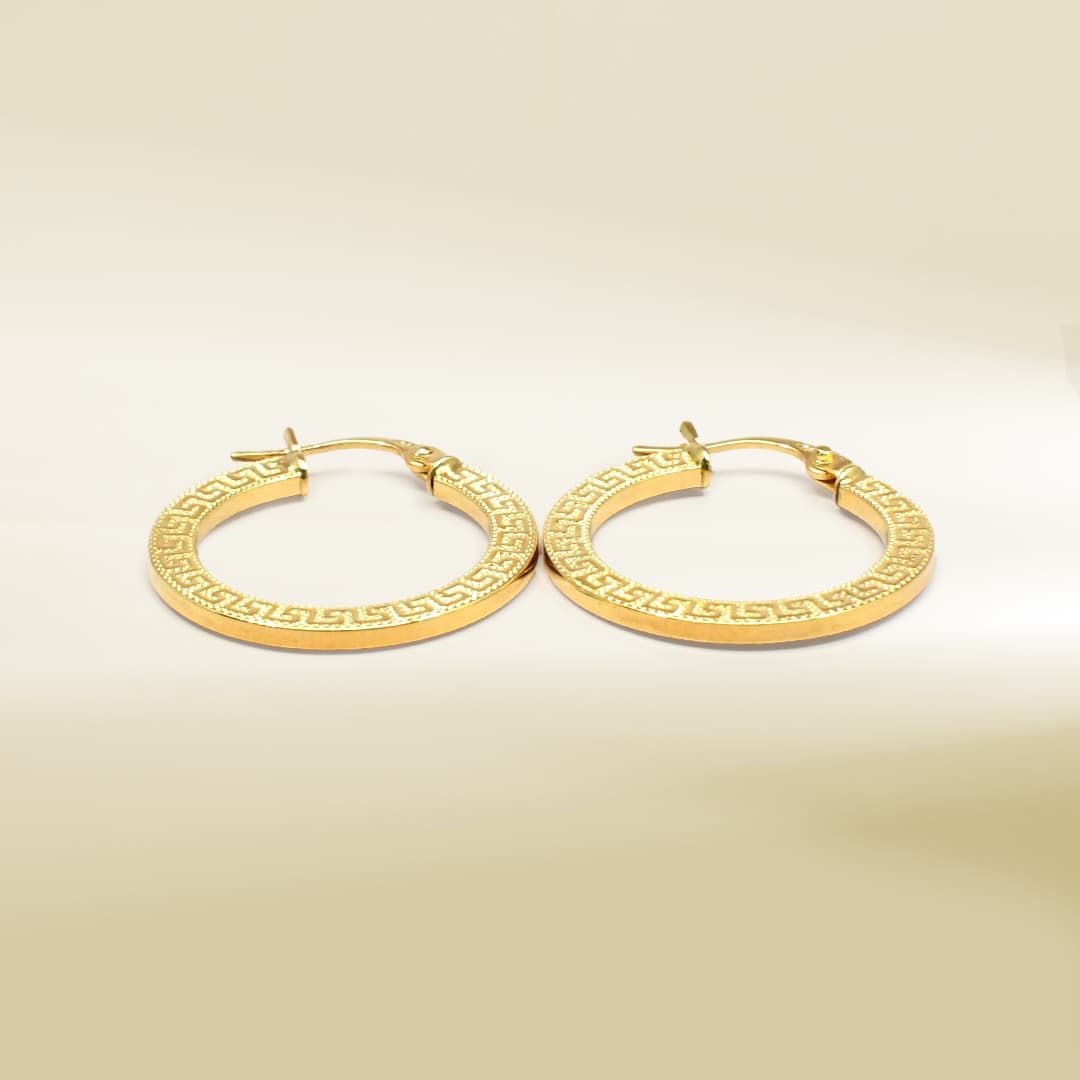 18K Yellow Gold Brand Inspired Hoop Earrings