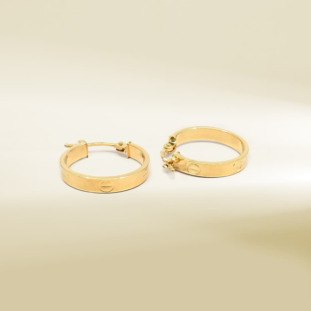 18K Yellow Gold Brand Inspired Hoop Earrings