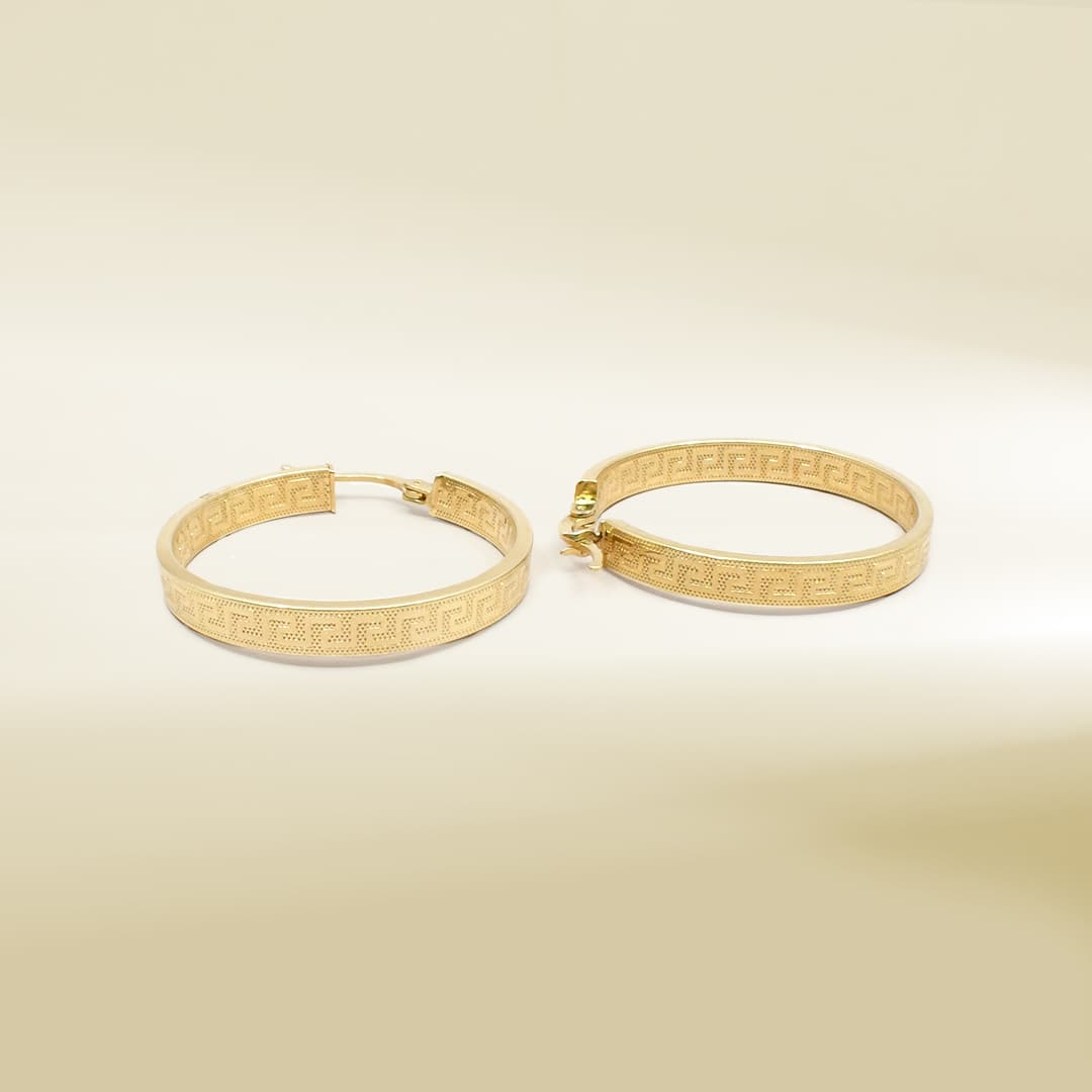 18K Yellow Gold Brand Inspired Hoop Earrings