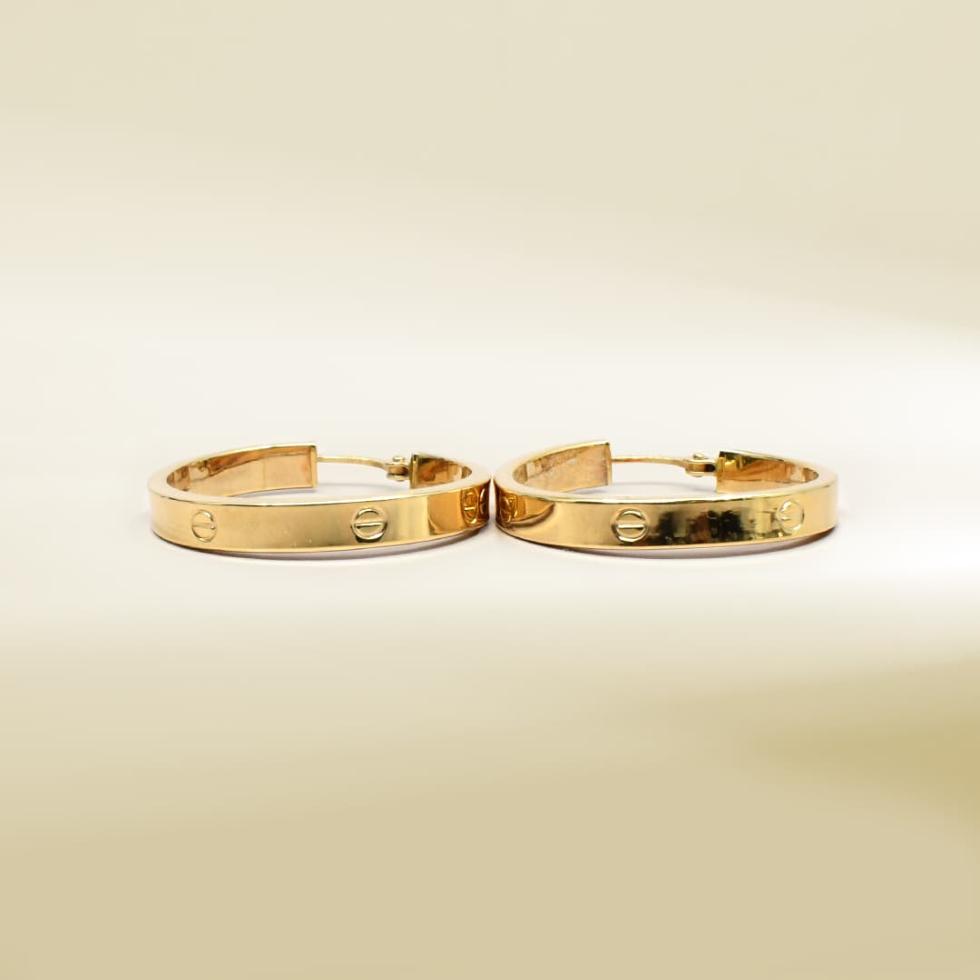 18K Yellow Gold Brand Inspired Hoop Earrings
