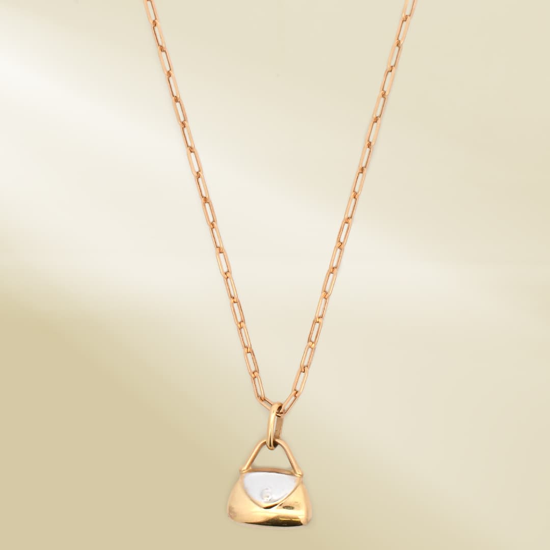 18K Yellow Gold Brand-Inspired Necklace with Two-Tone Bag Pendant