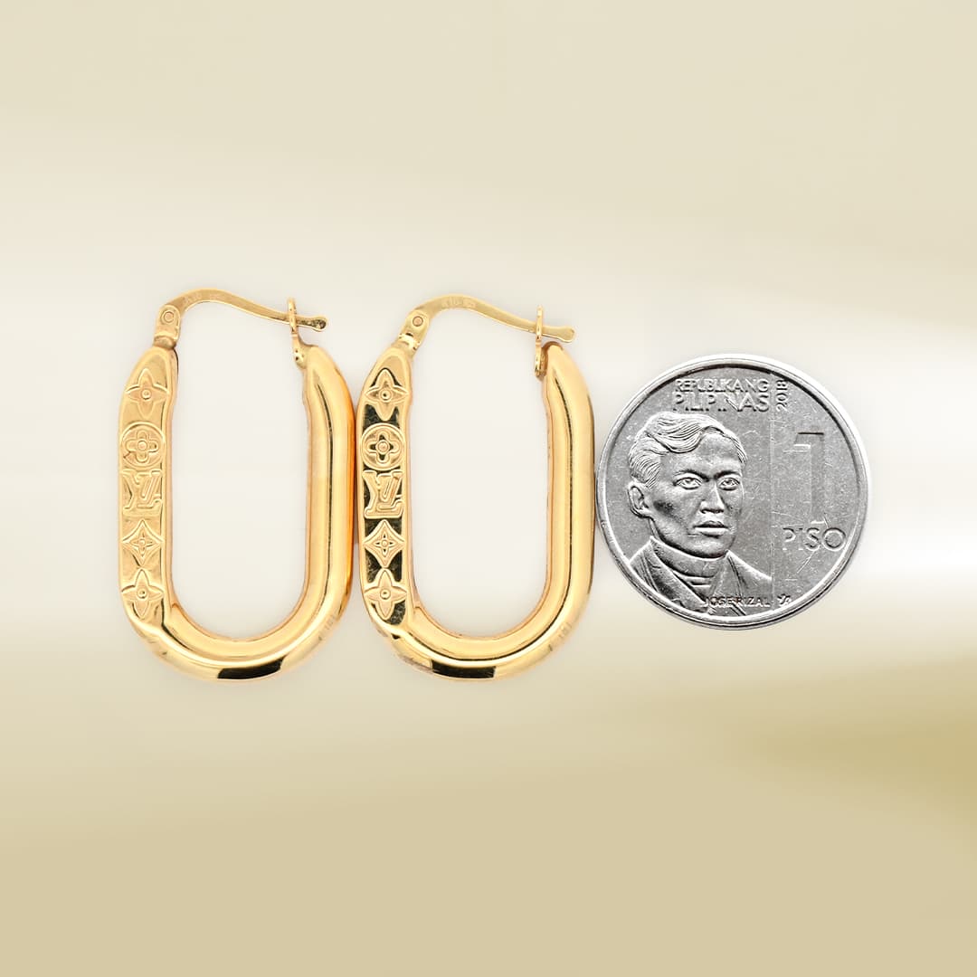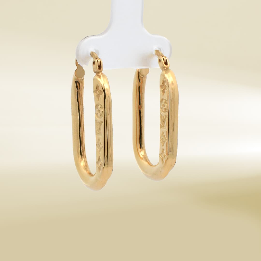 18K Yellow Gold Brand-Inspired Oval Shape Hoop Earrings