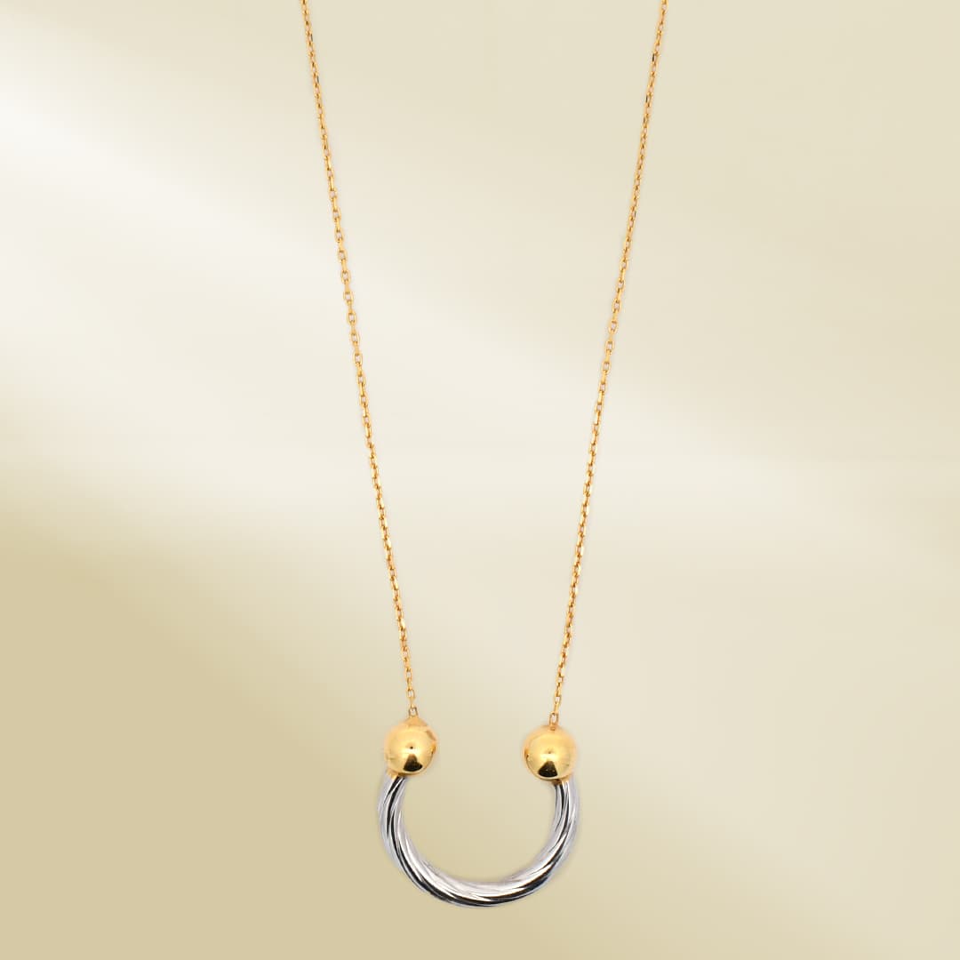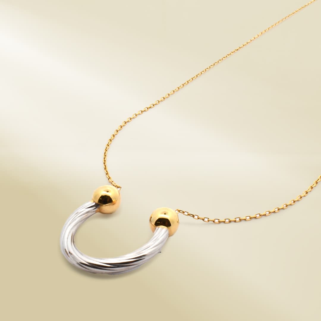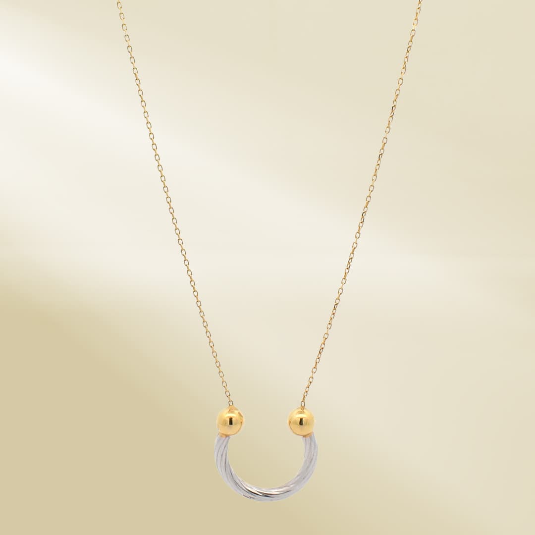 18K Yellow Gold Cable Chain Necklace with Two-Tone Brand-inspired Pendant