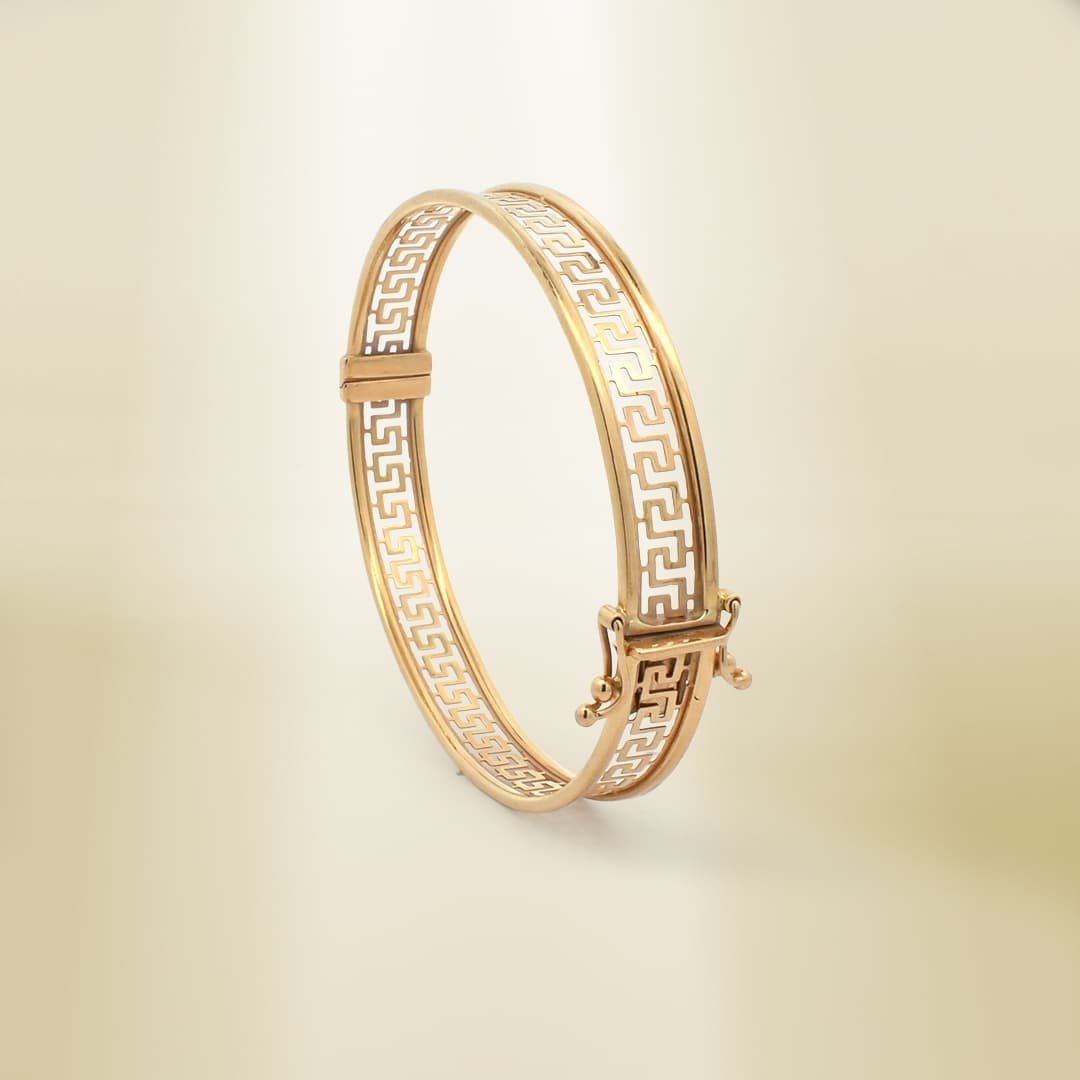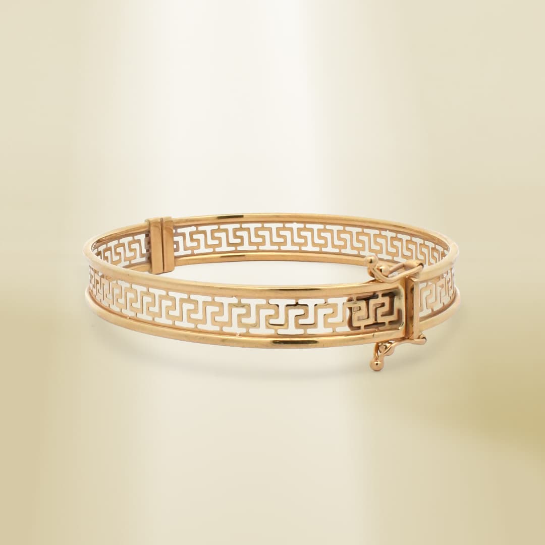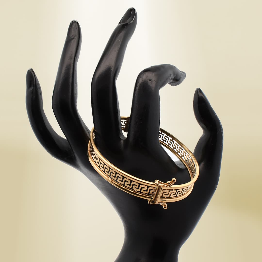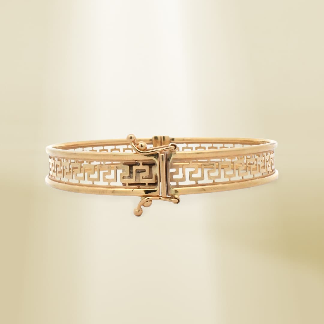 18K Yellow Gold Clip Type Greek Pattern Bangle