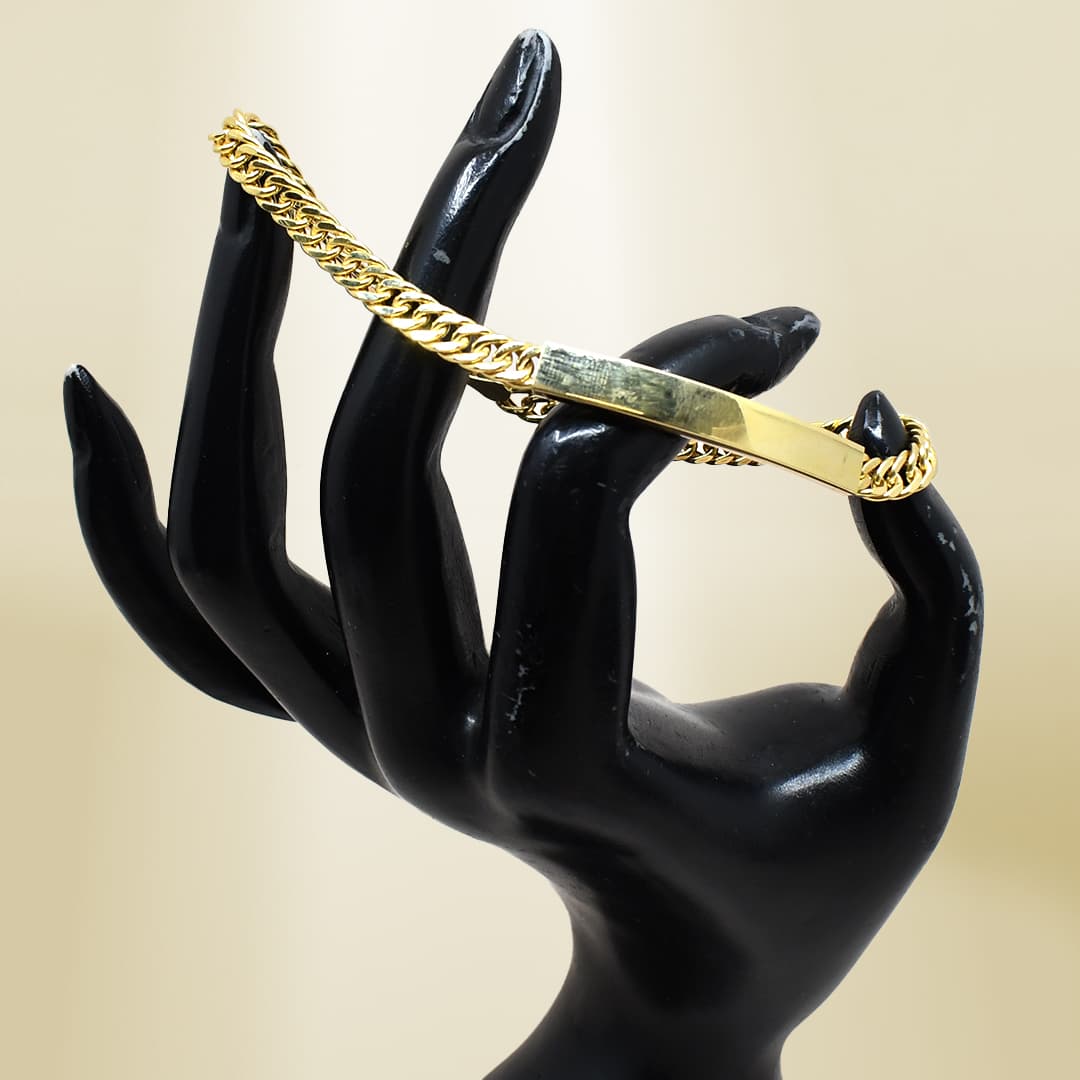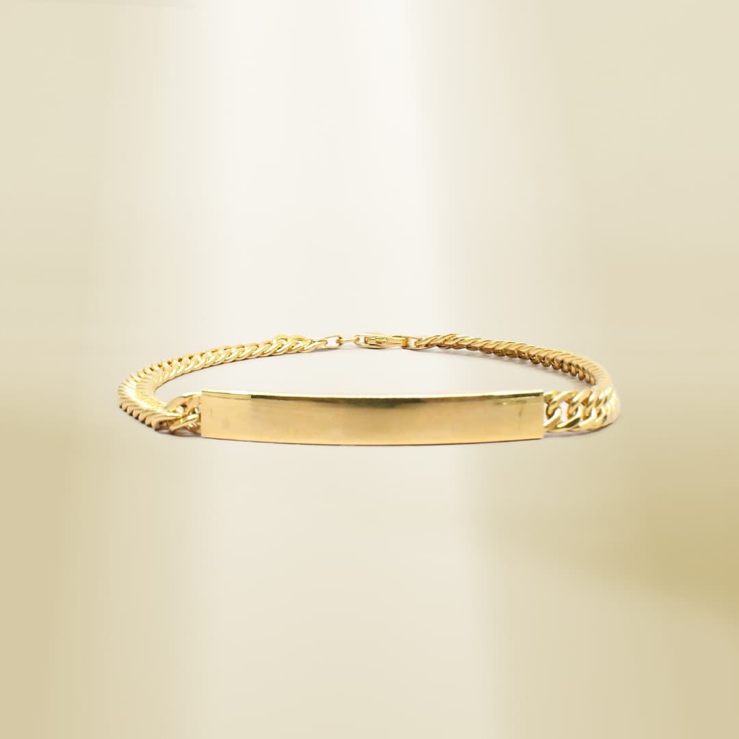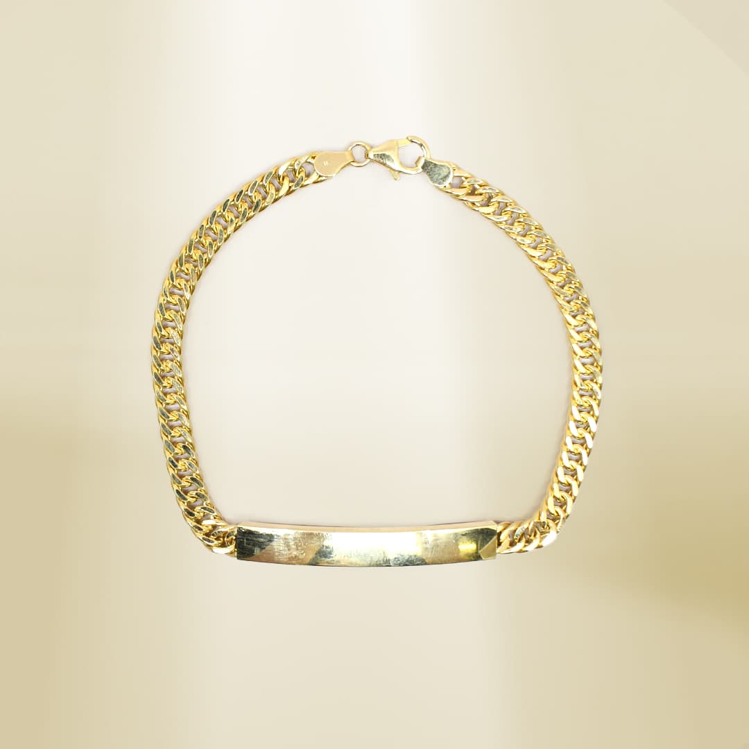 18K Yellow Gold Curb Chain ID Bracelet