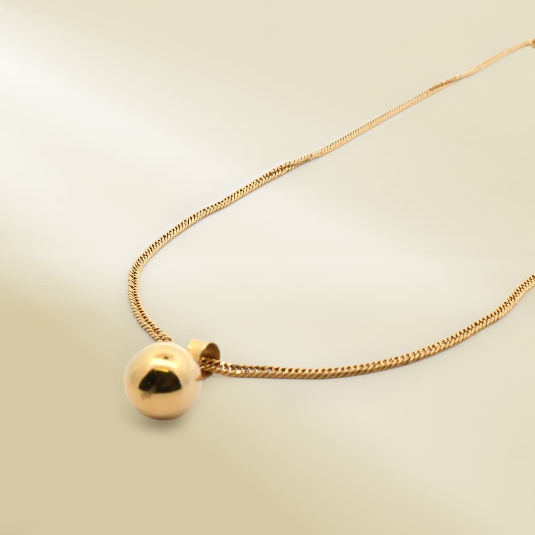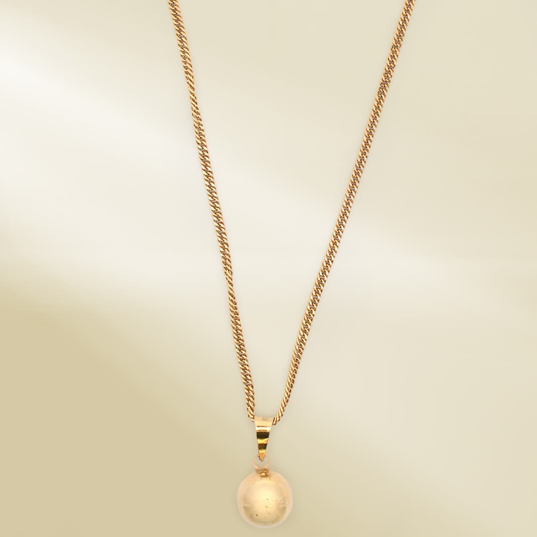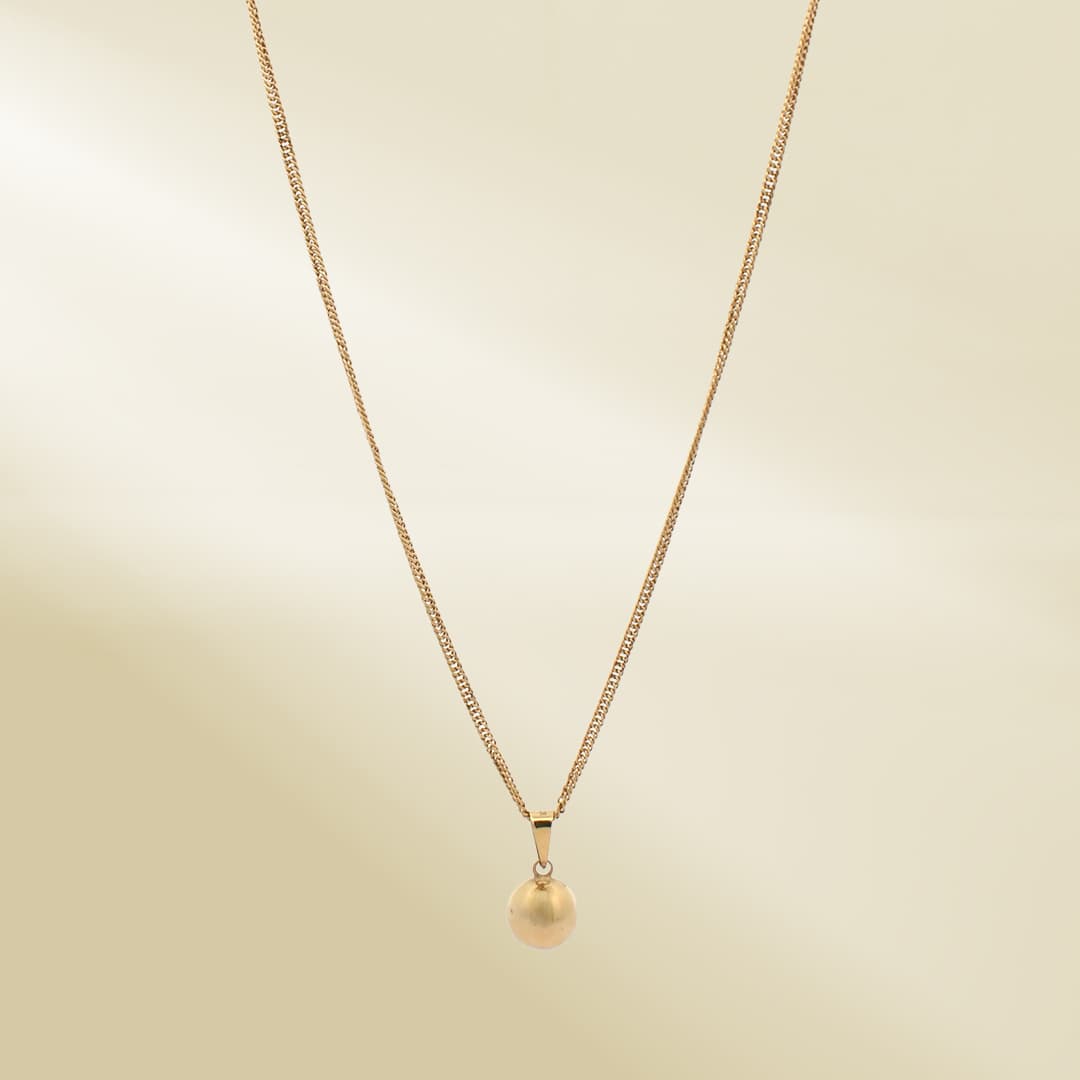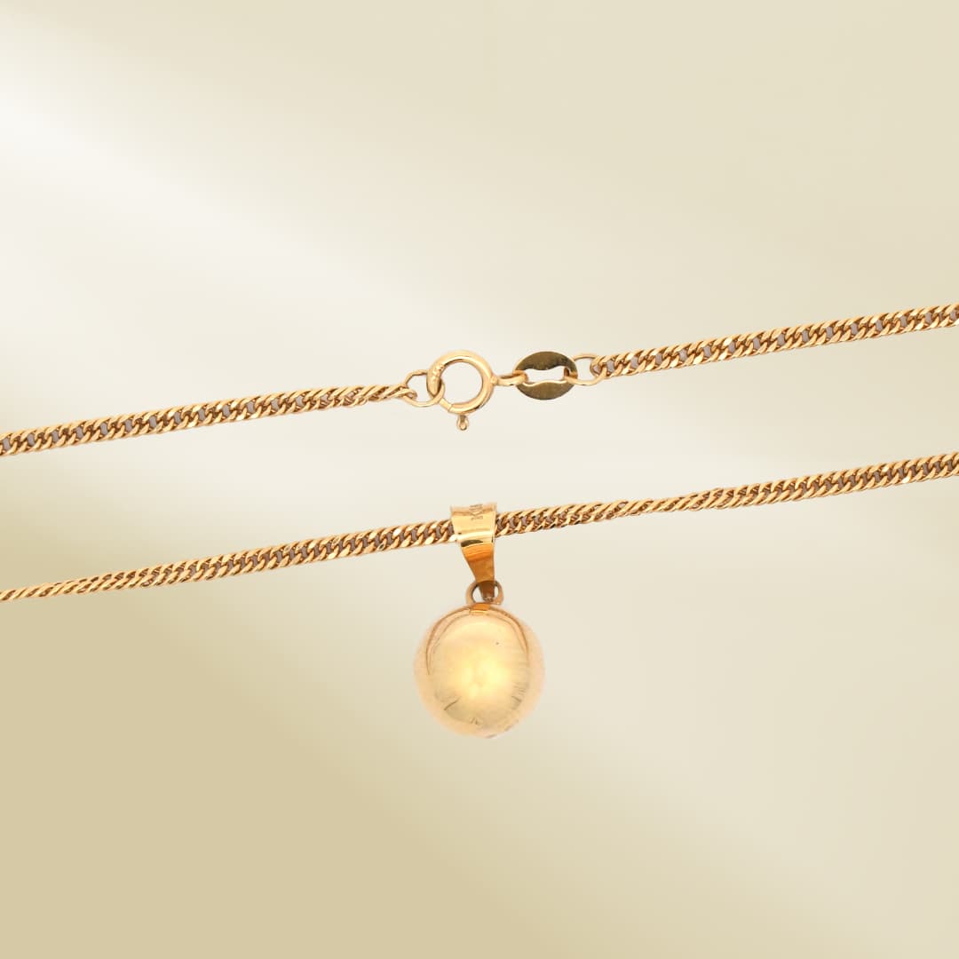 18K Yellow Gold Curb Chain Necklace with Ball Pendant