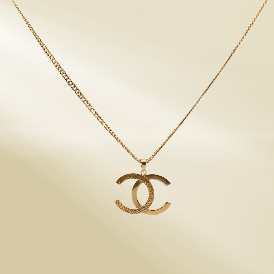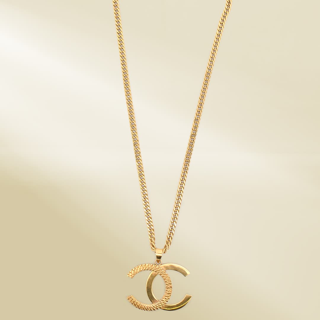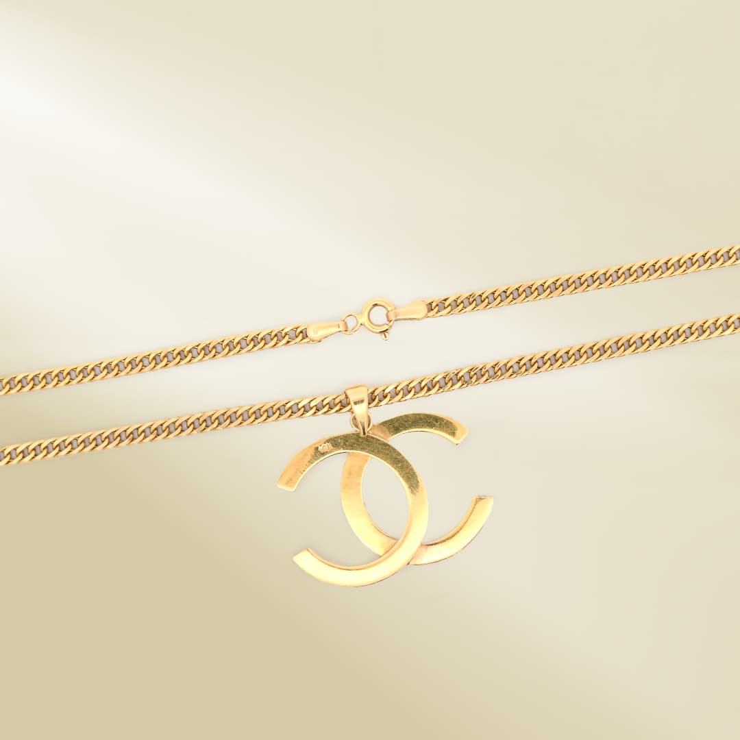 18K Yellow Gold Curb Chain Necklace with Brand-Inspired Pendant