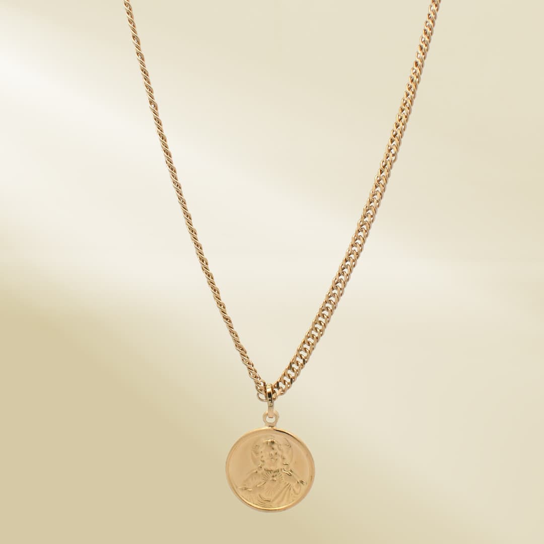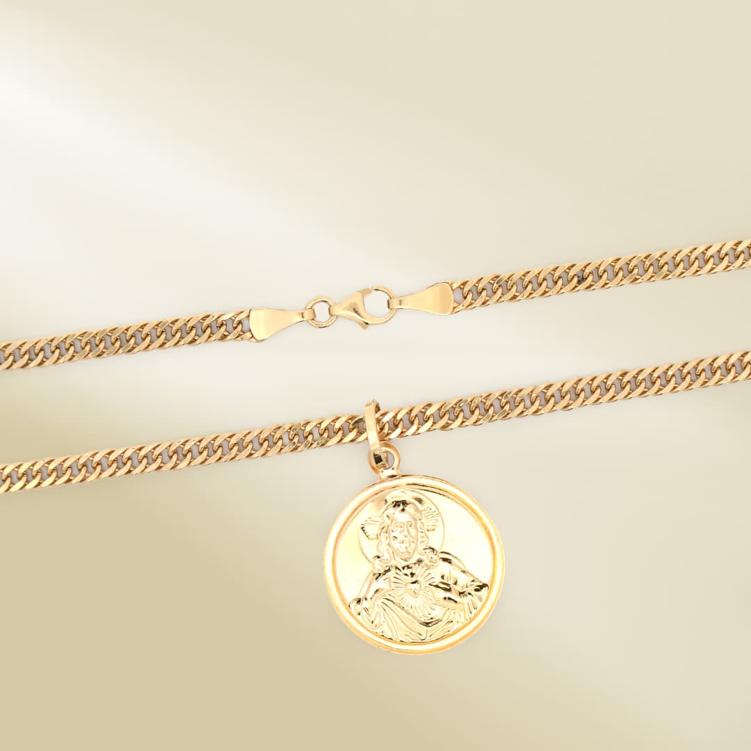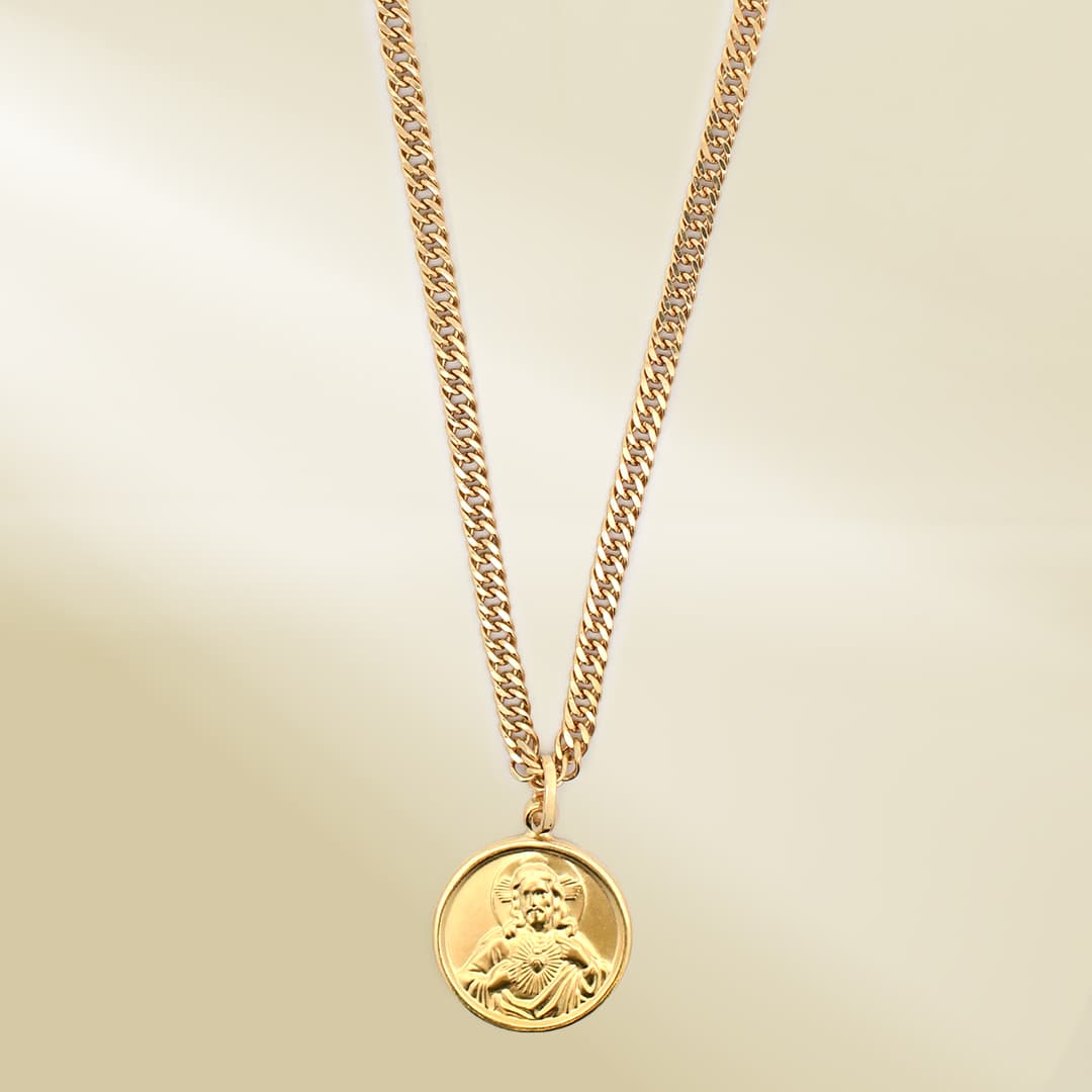 18K Yellow Gold Curb Chain Necklace with Christ Pendant