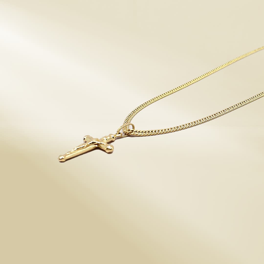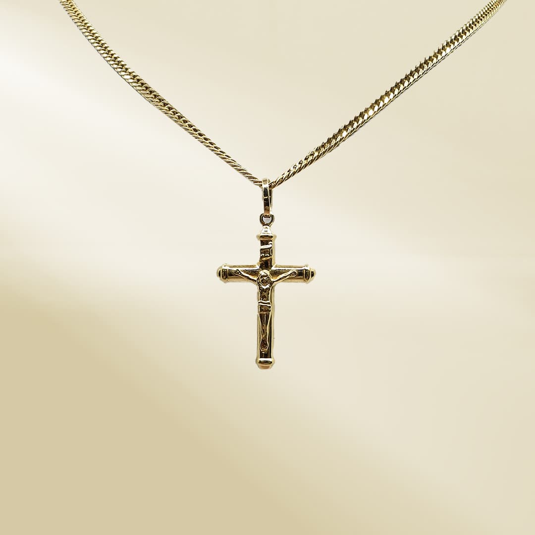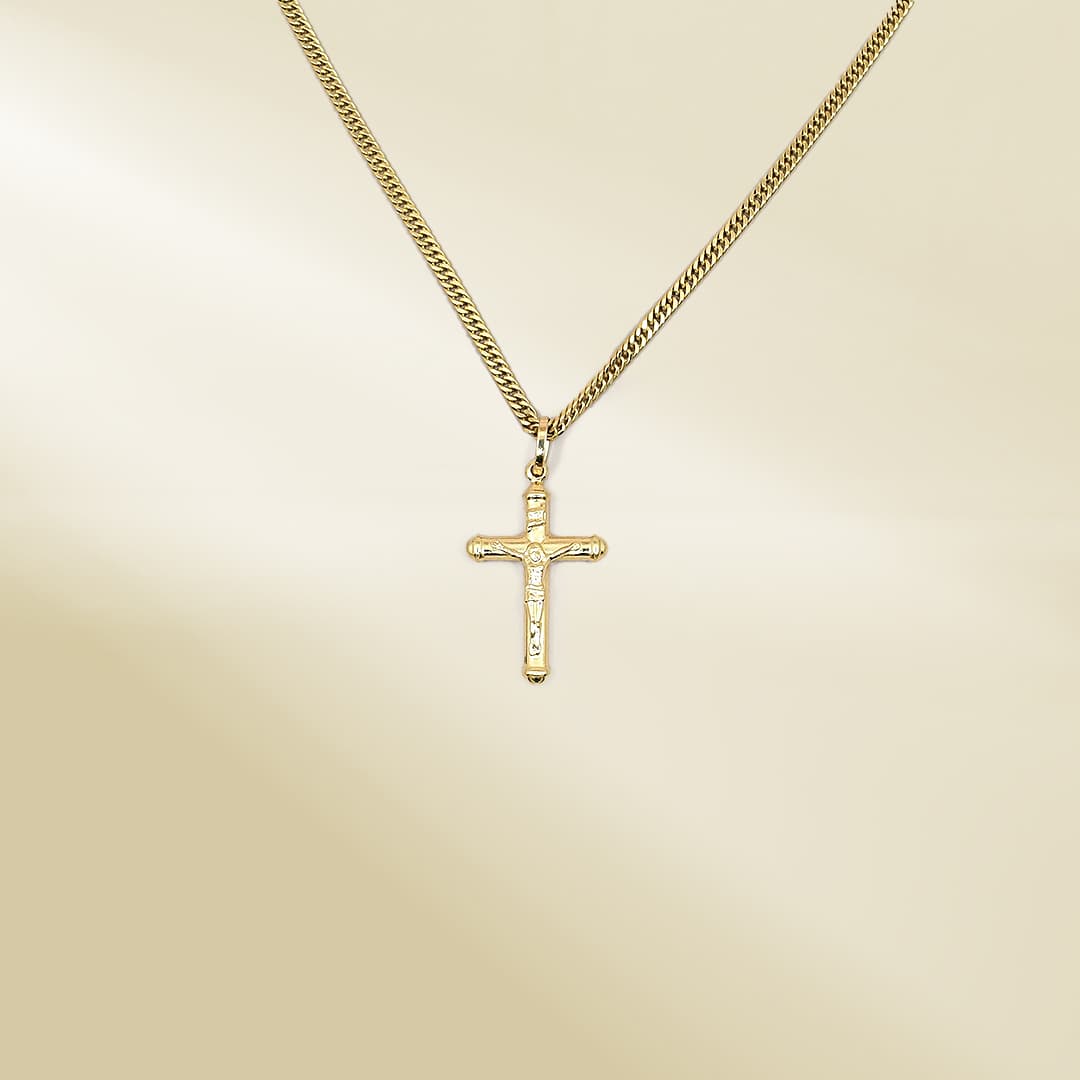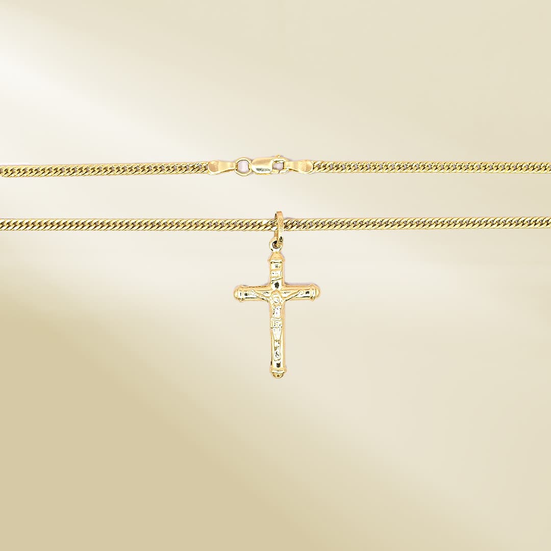 18K Yellow Gold Curb Chain Necklace with Christ Pendant