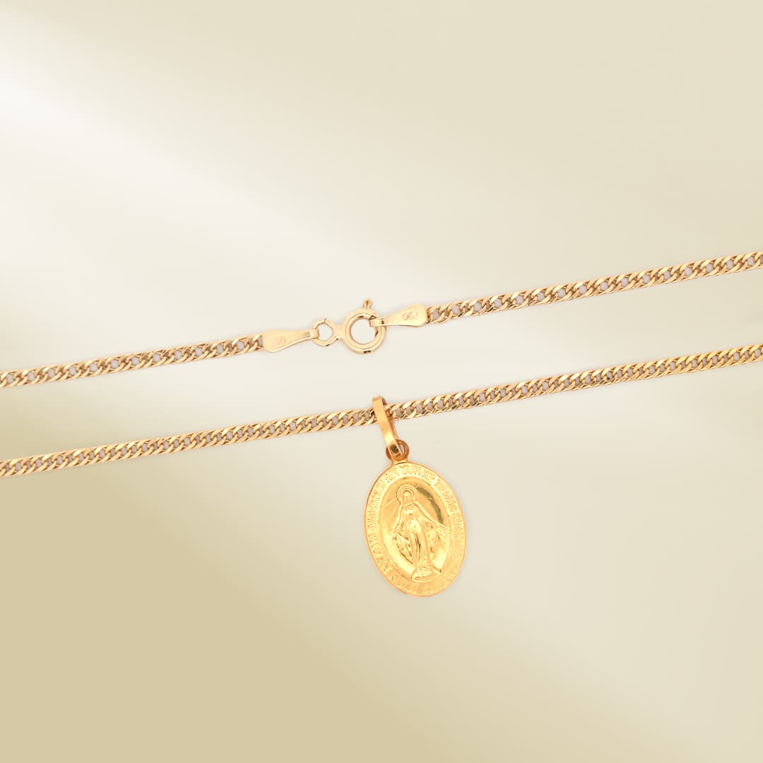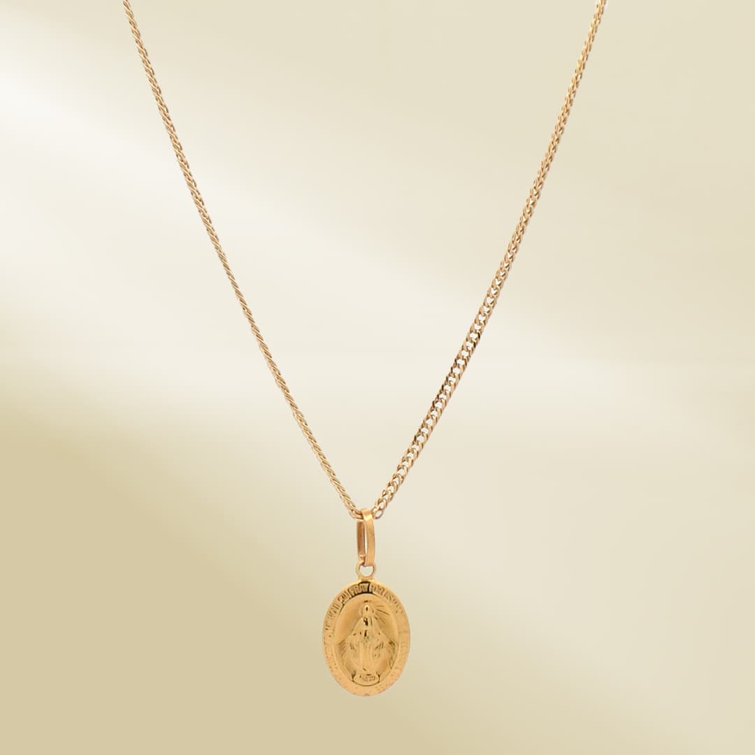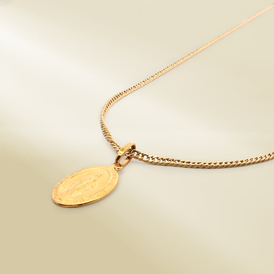 18K Yellow Gold Curb Chain Necklace with Christ Pendant