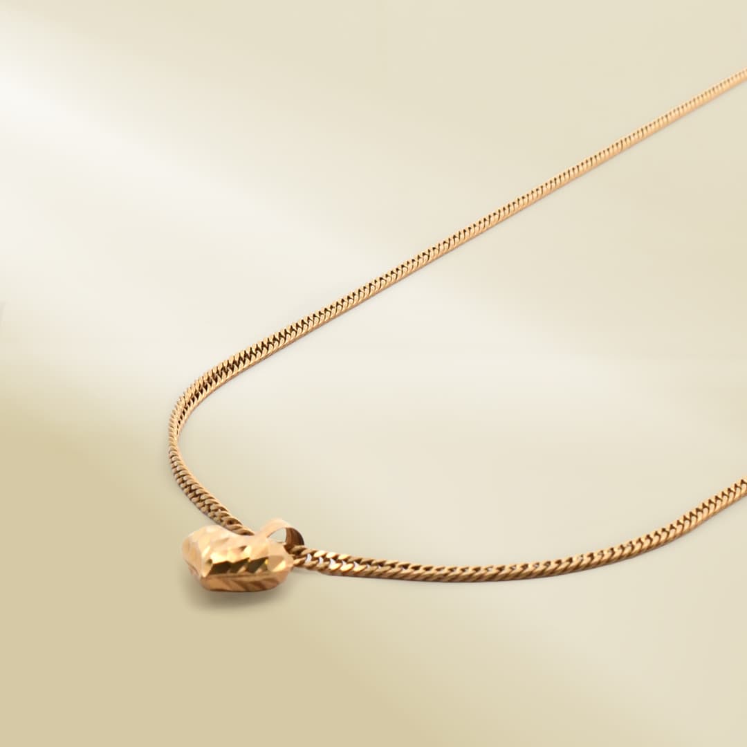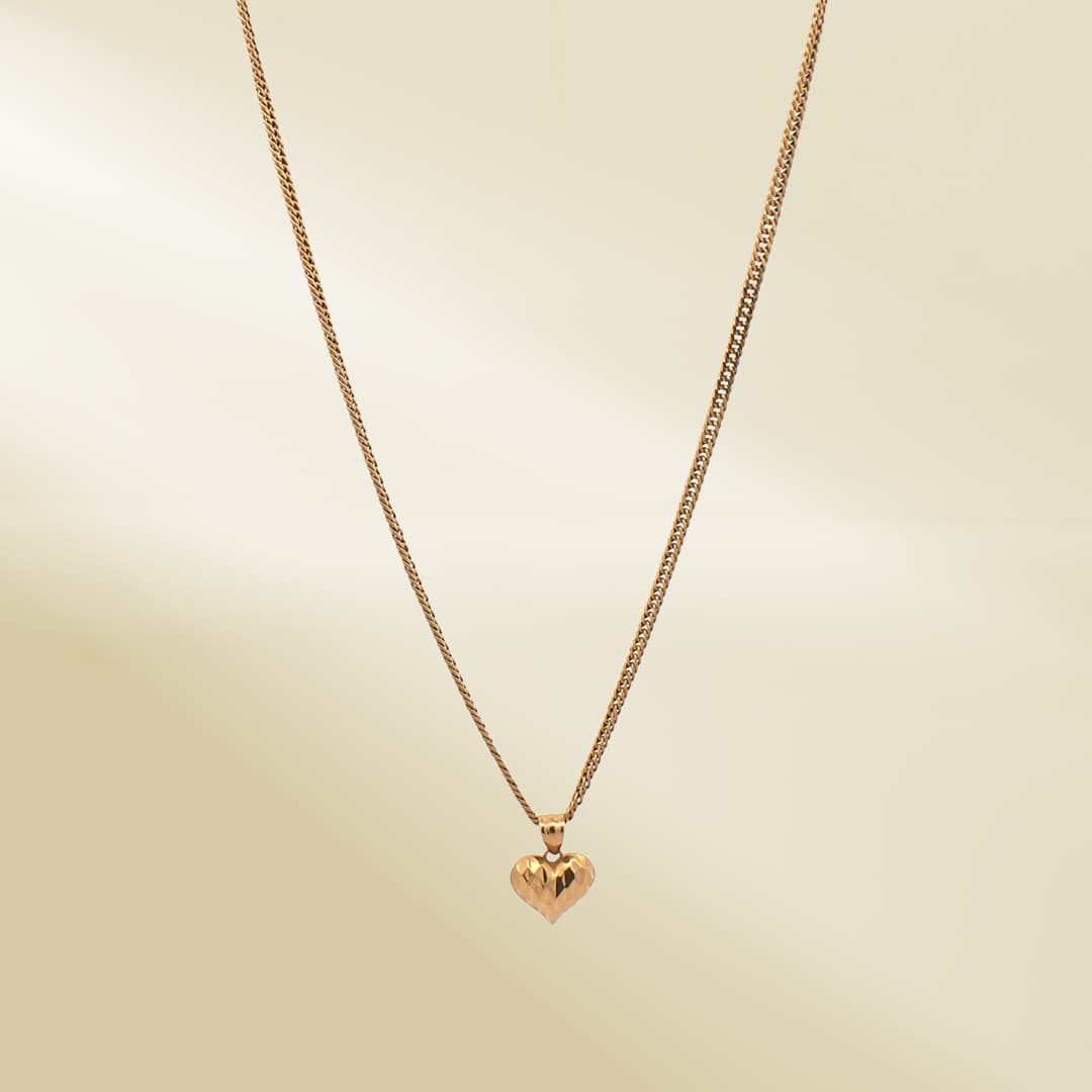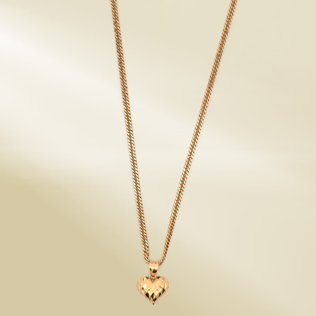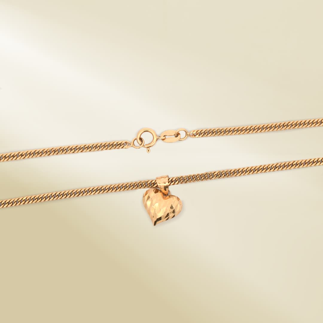18K Yellow Gold Curb Chain Necklace with Heart Pendant