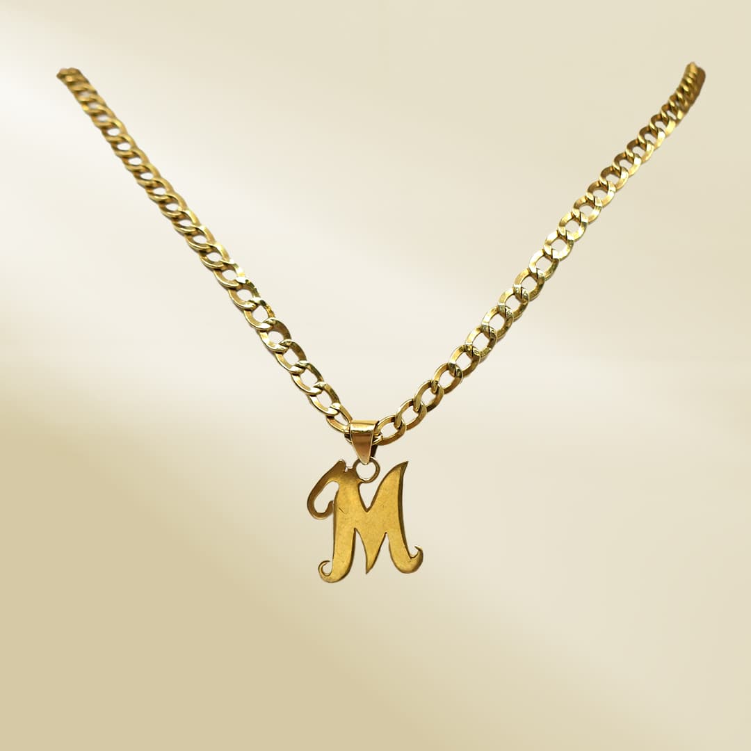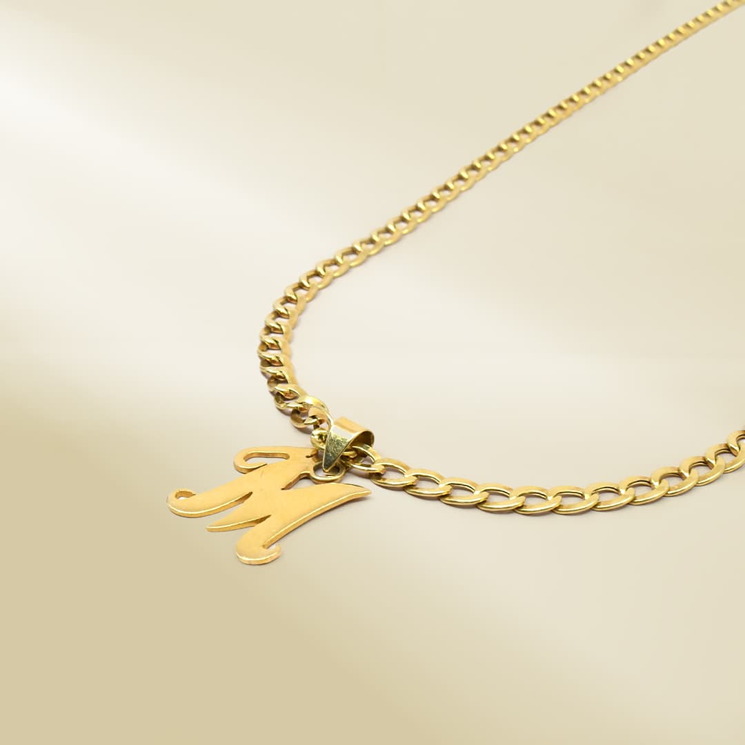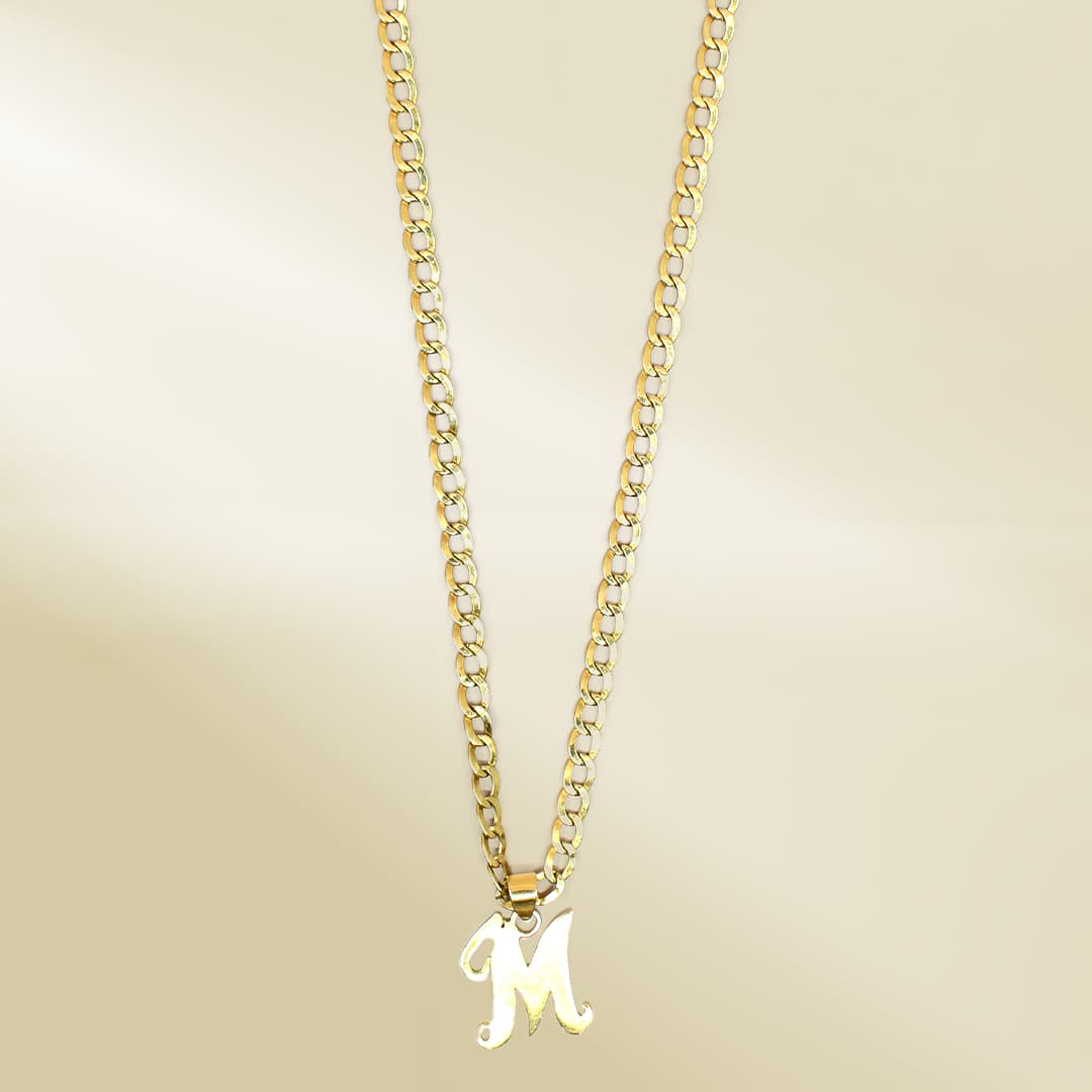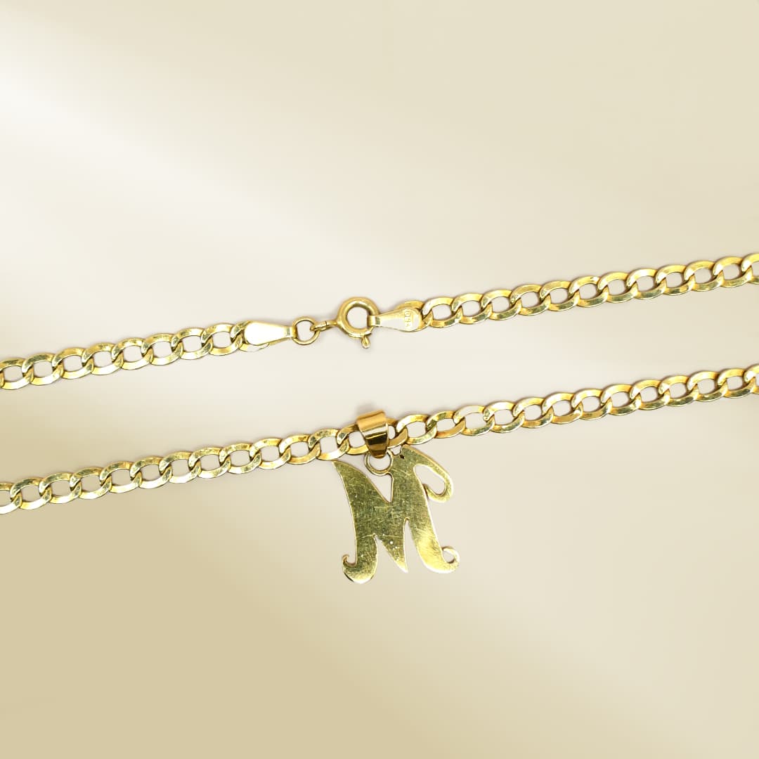 18K Yellow Gold Curb Chain Necklace with Initial Pendant