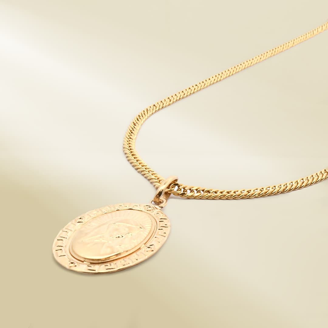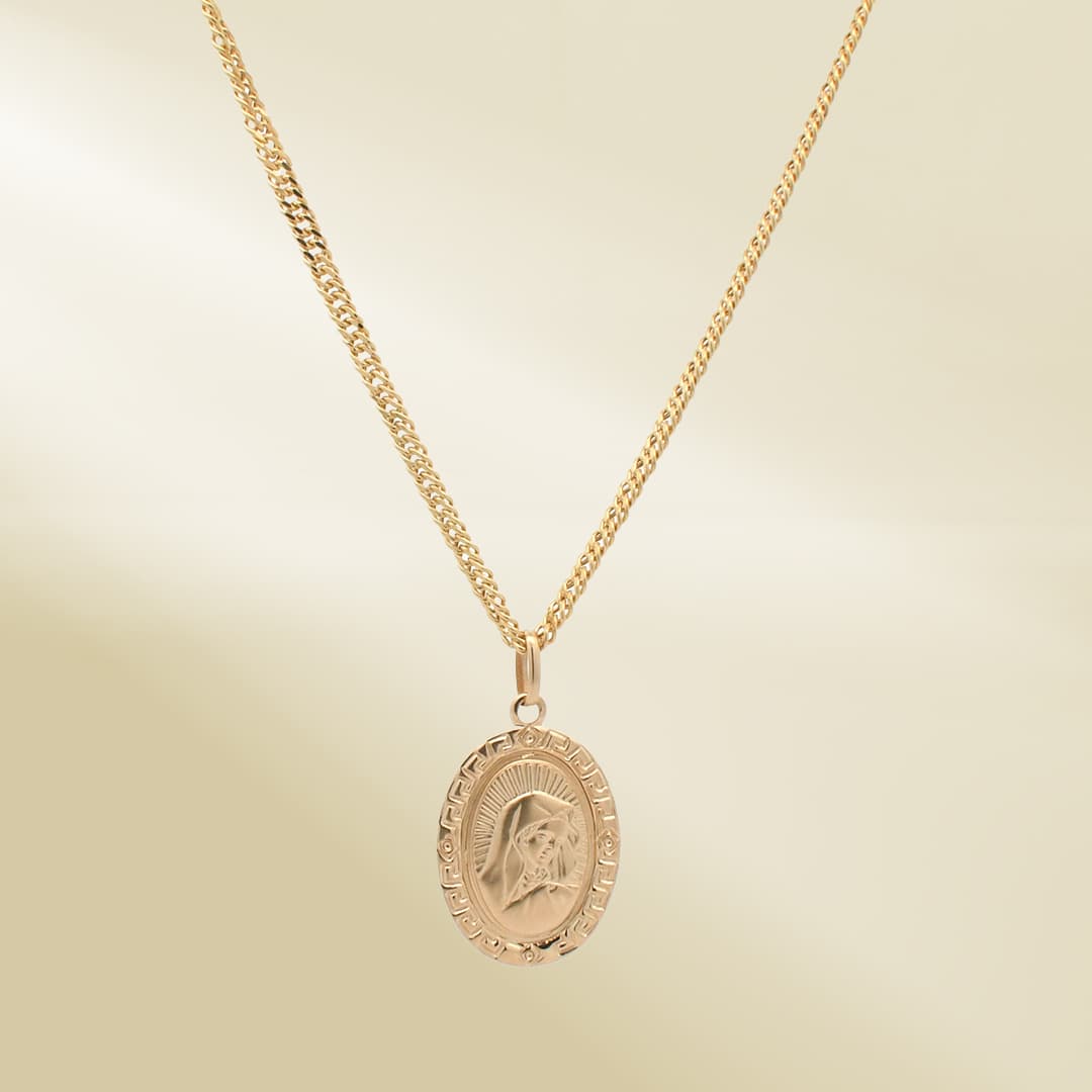 18K Yellow Gold Curb Chain Necklace with Mother Mary Pendant