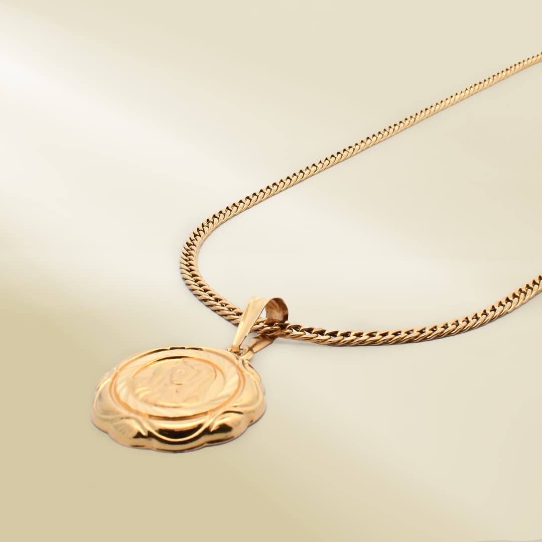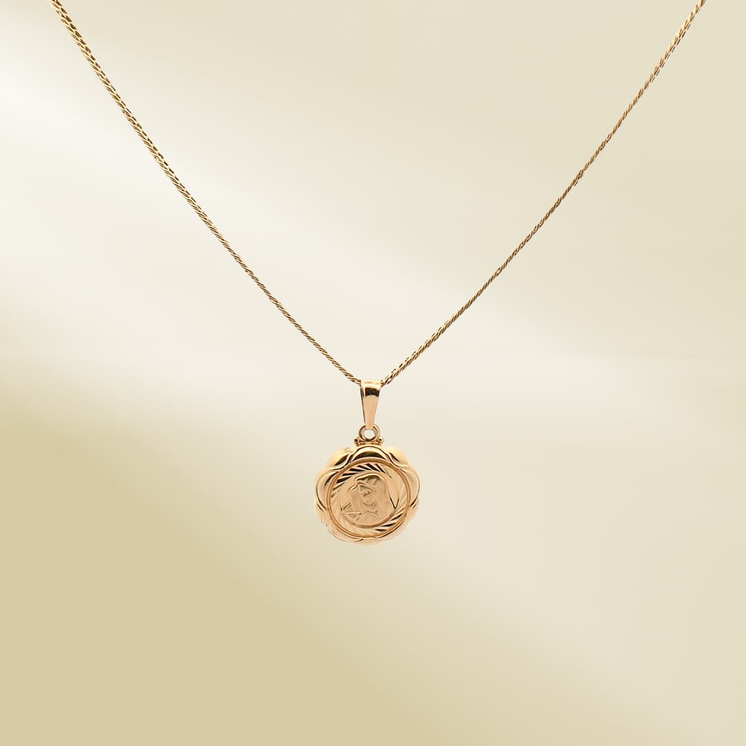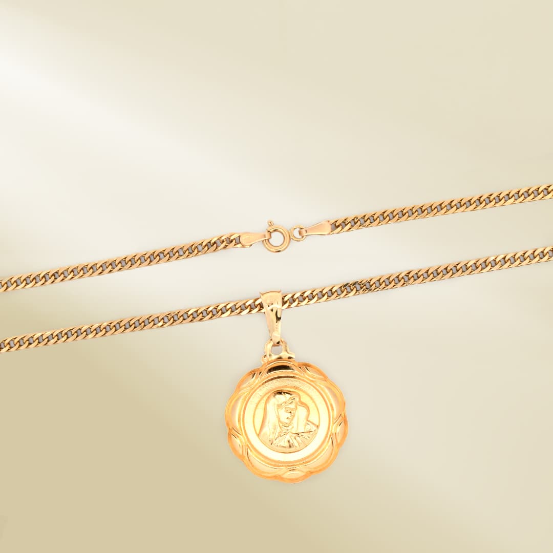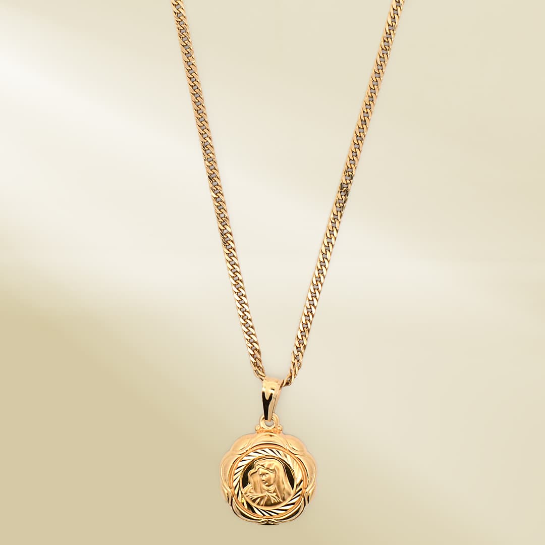 18K Yellow Gold Curb Chain Necklace with Mother Mary Pendant