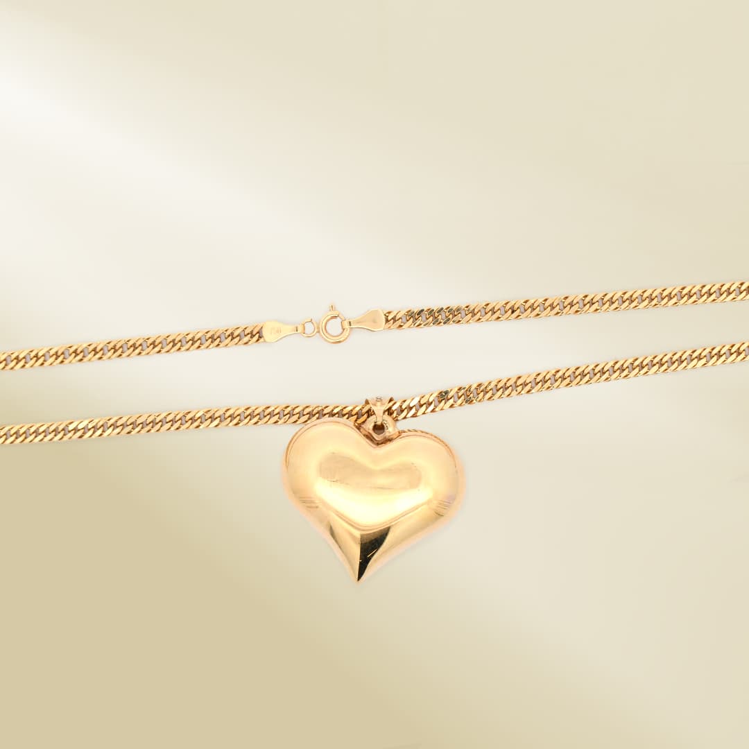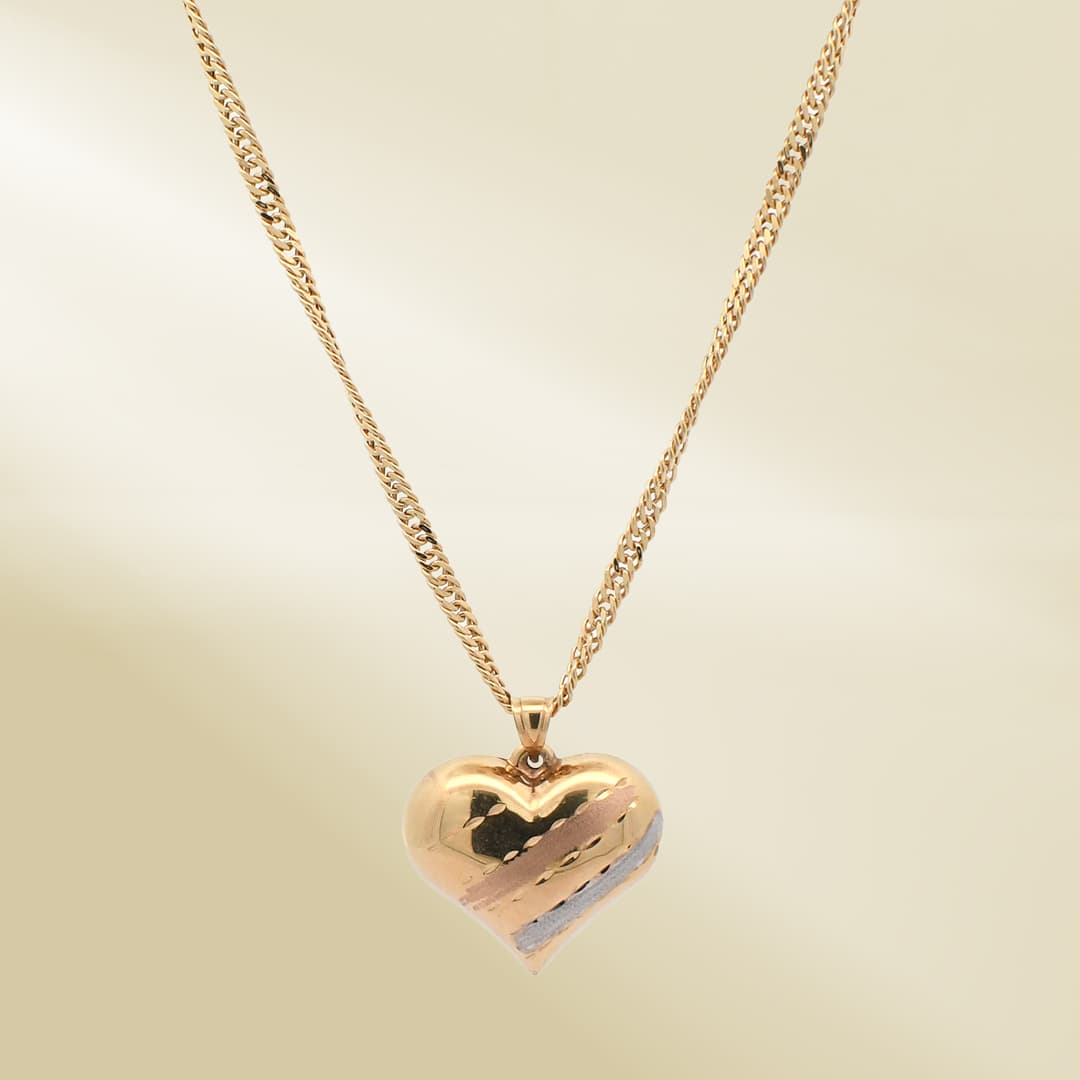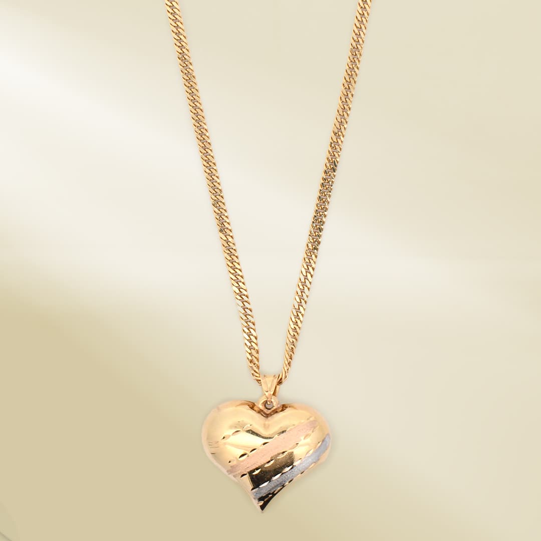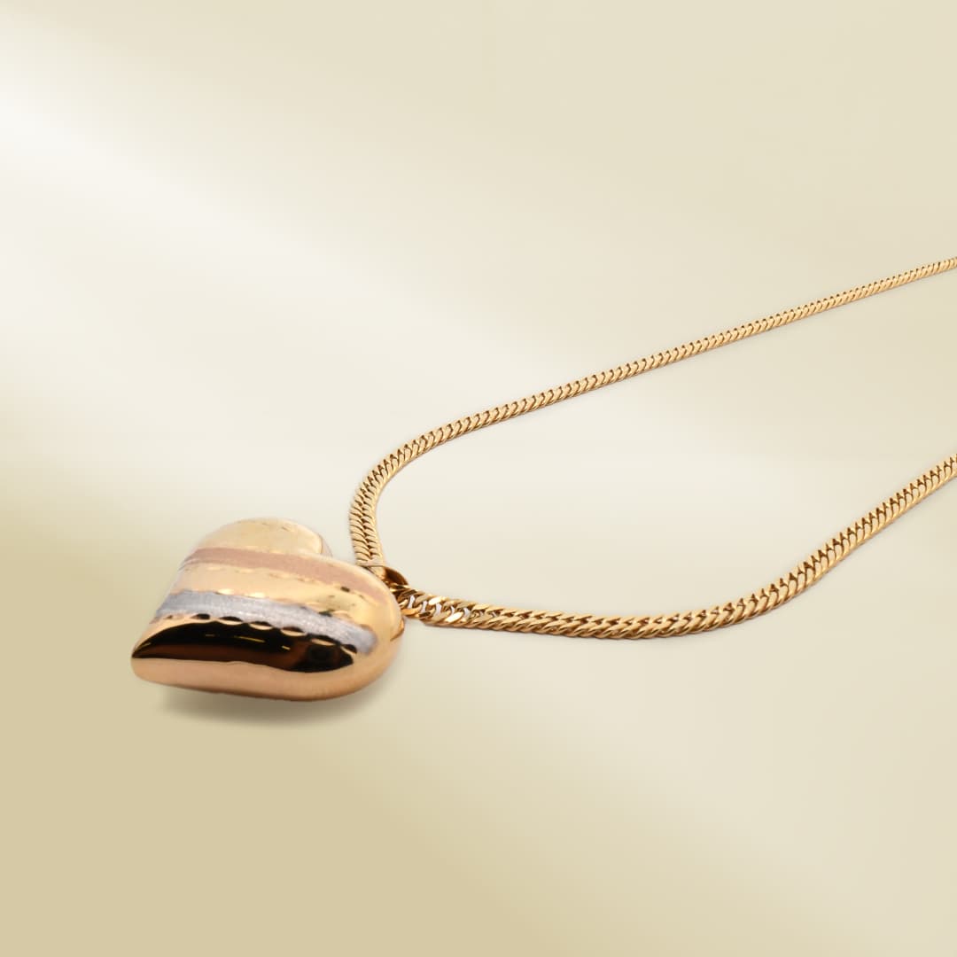 18K Yellow Gold Curb Chain Necklace with Tri-Color Heart Pendant