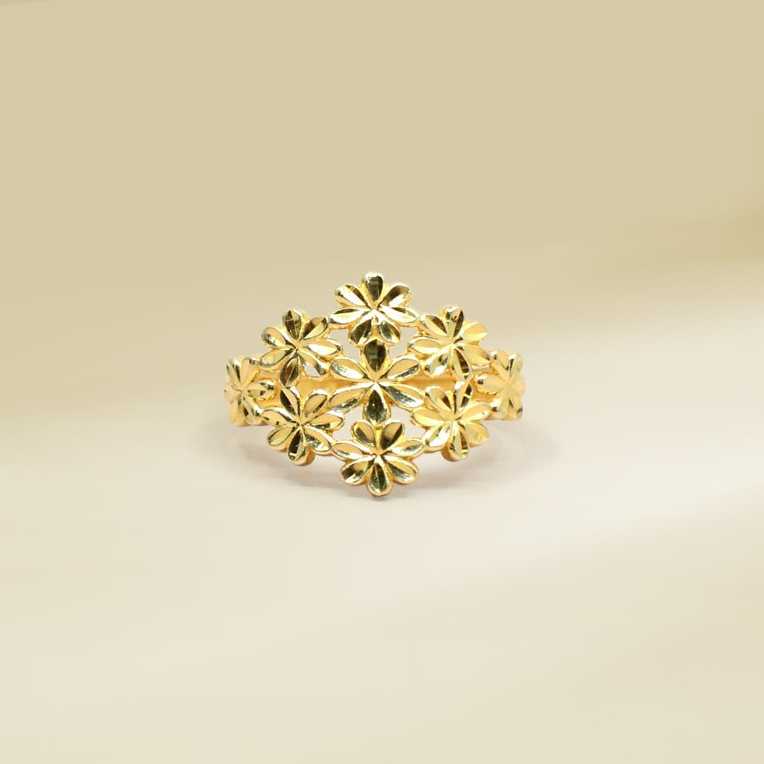 18K Yellow Gold Flower Design Band Ladies’ Ring