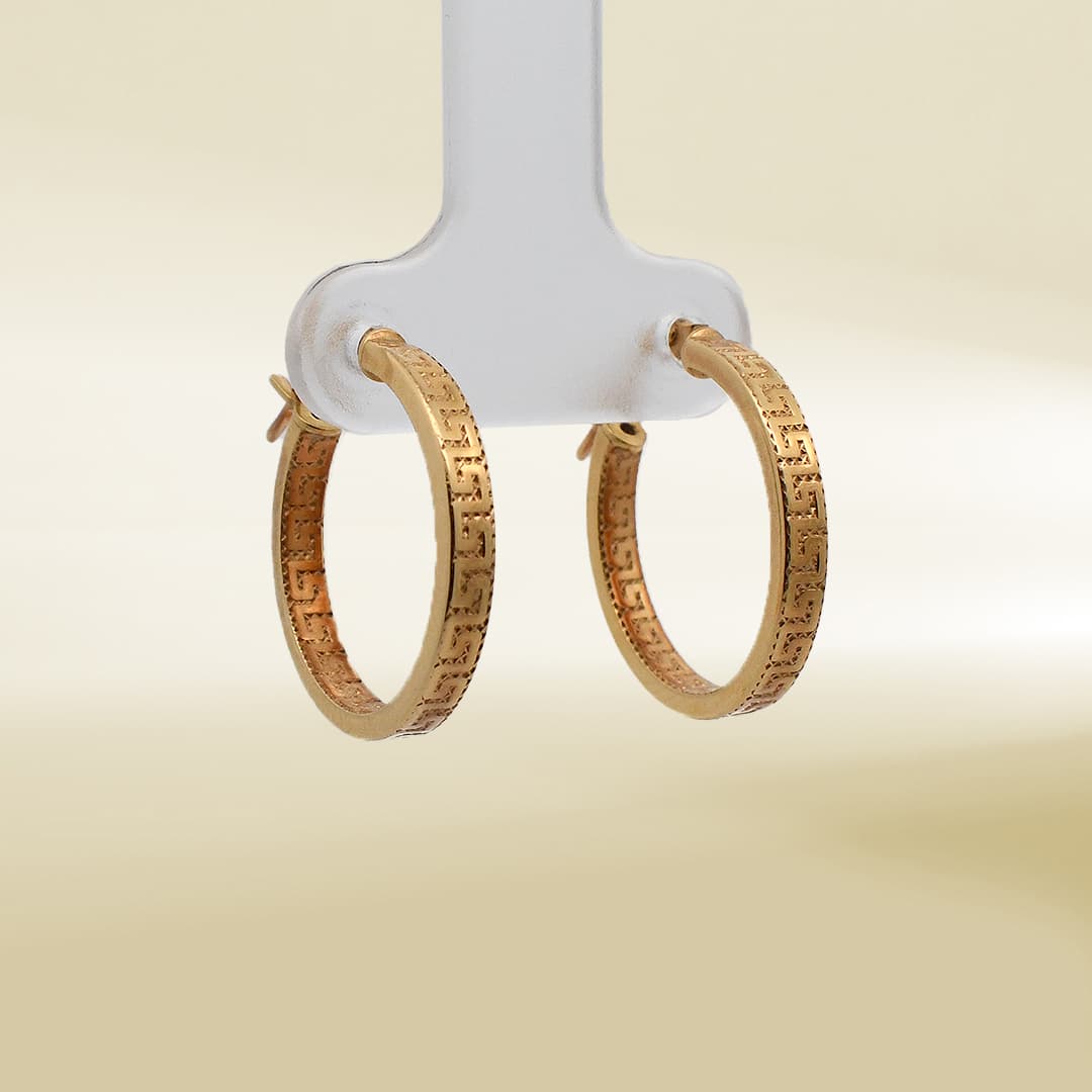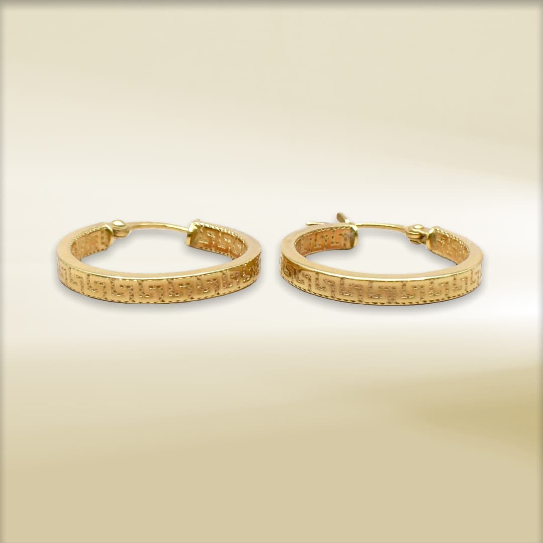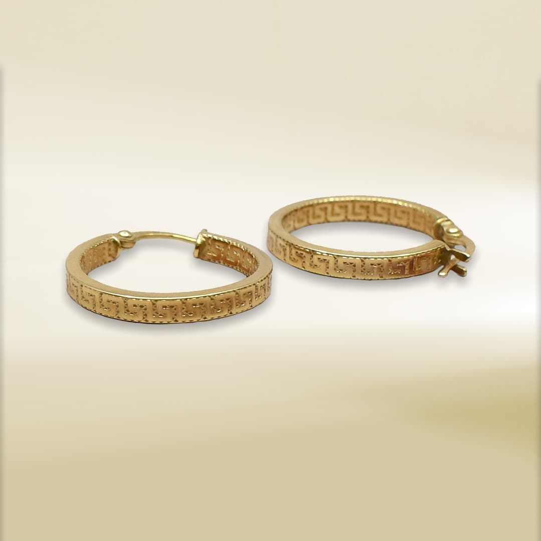 18K Yellow Gold Greek Inspired Patterned Hoop Earrings