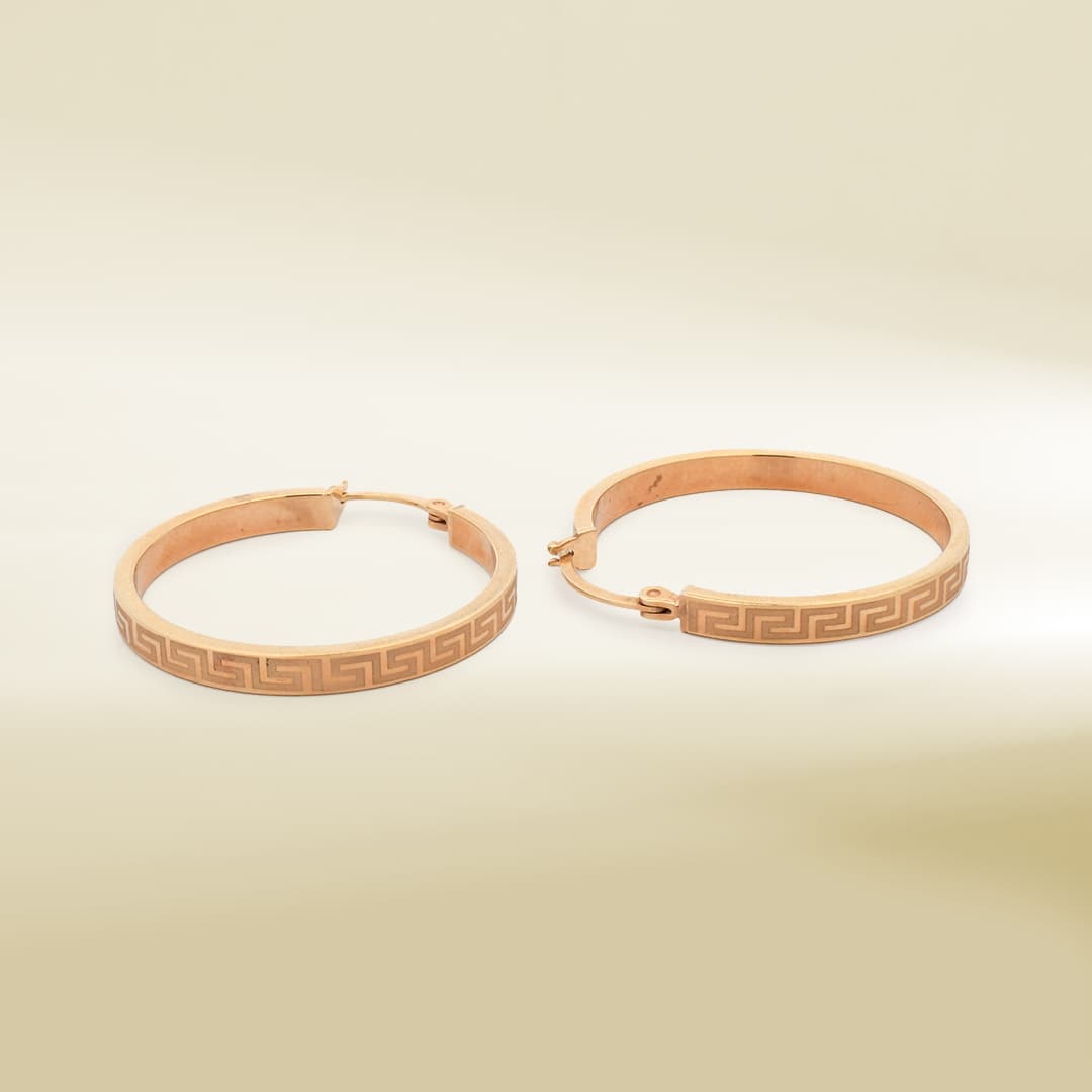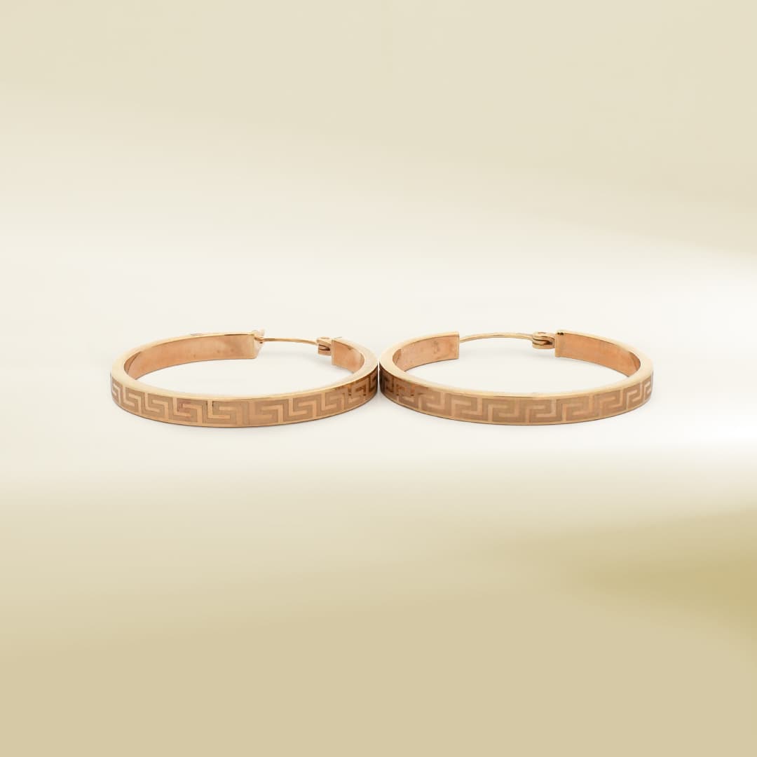 18K Yellow Gold Greek Pattern Hoop Earrings