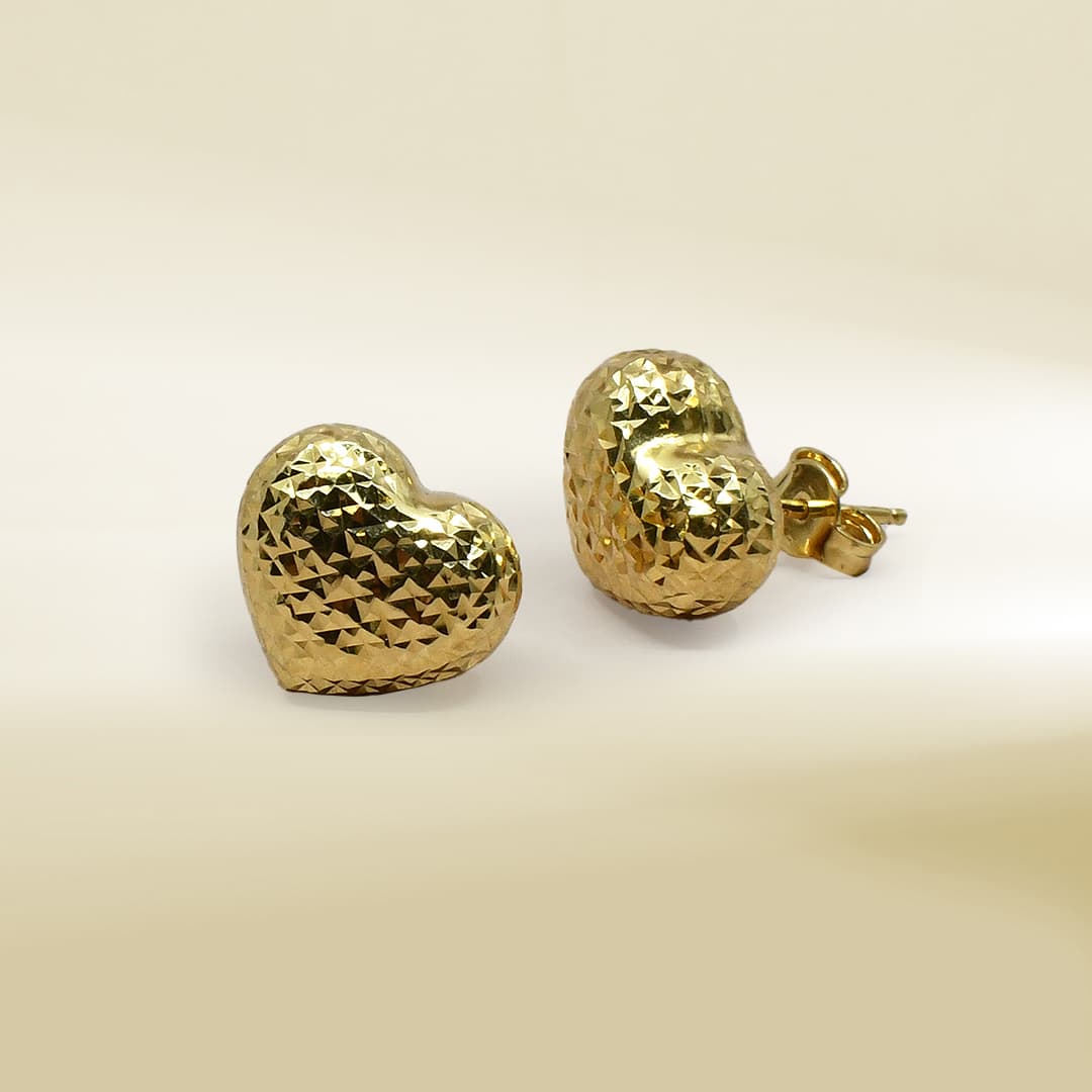 18K Yellow Gold Heart Design Earrings