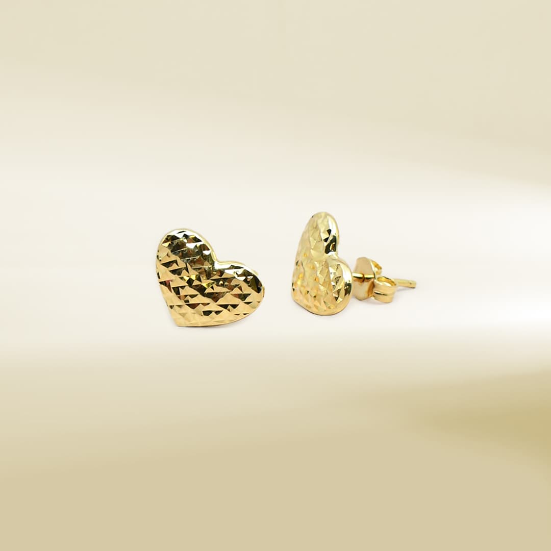 18K Yellow Gold Heart Design Earrings