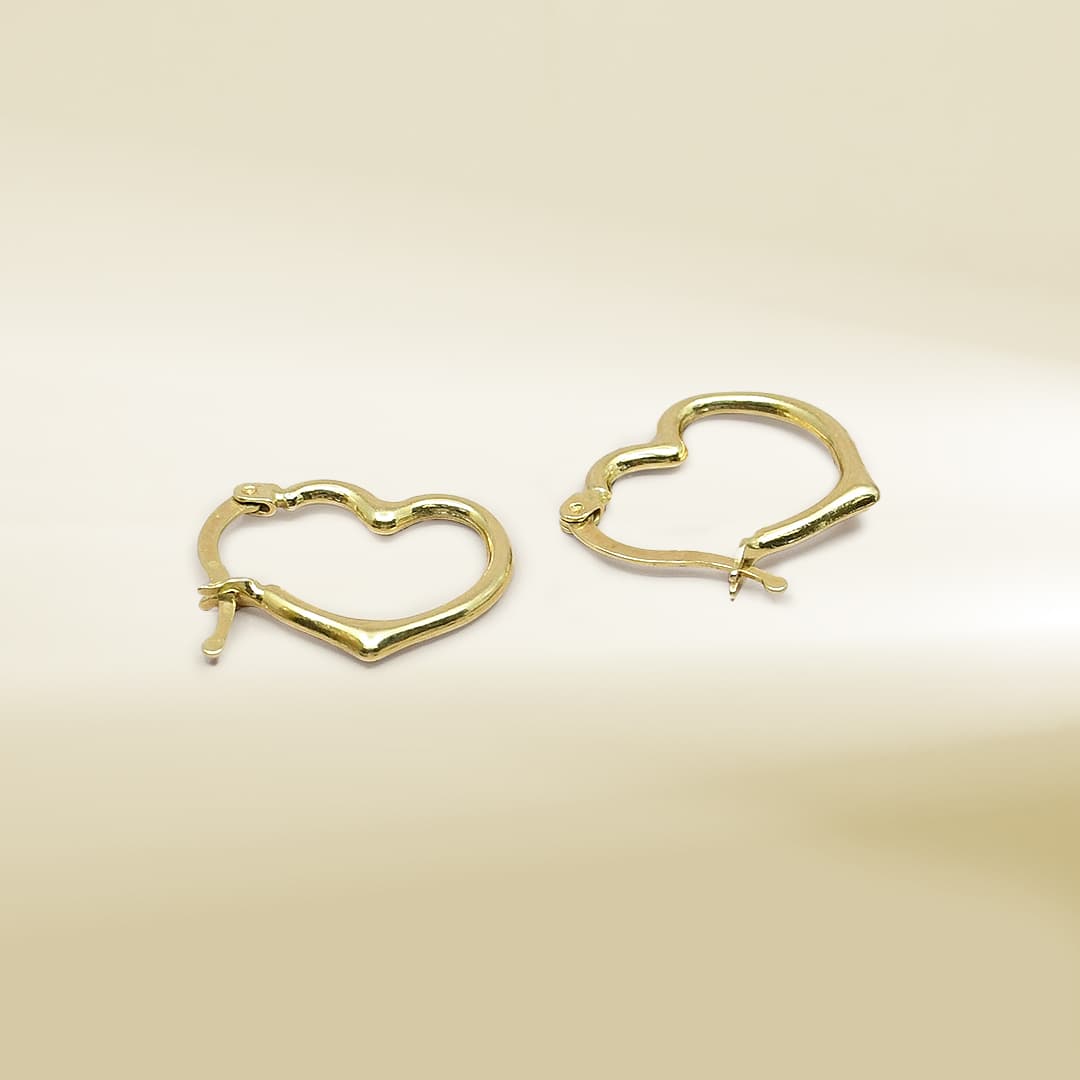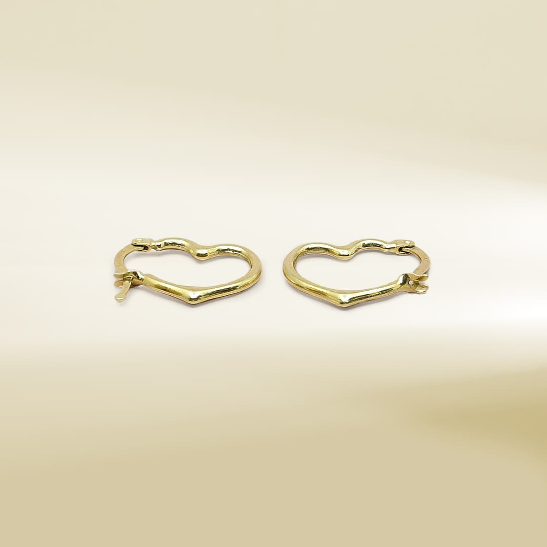 18K Yellow Gold Heart Shaped Hoop Earrings