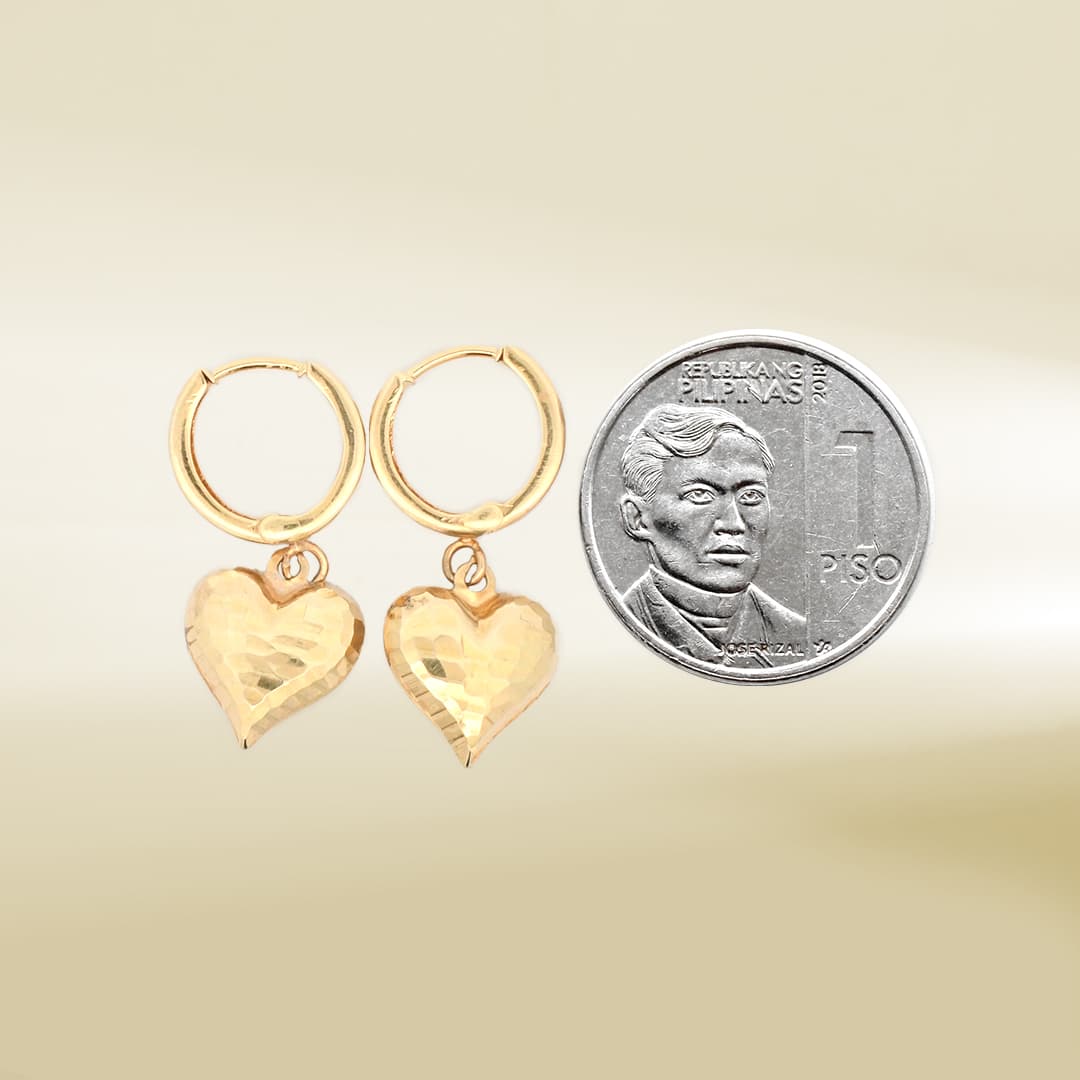 18K Yellow Gold Huggie with Heart Dangle Earrings
