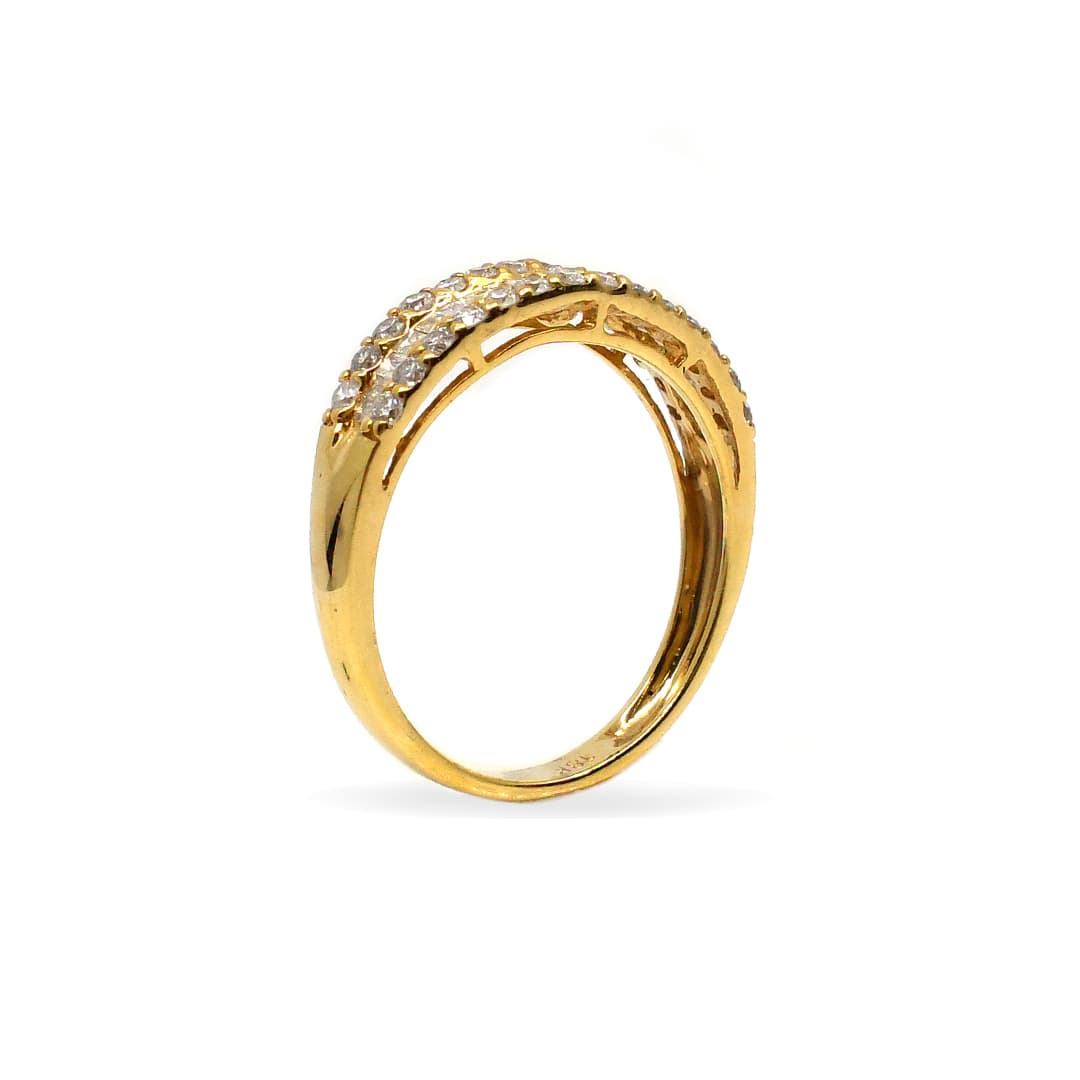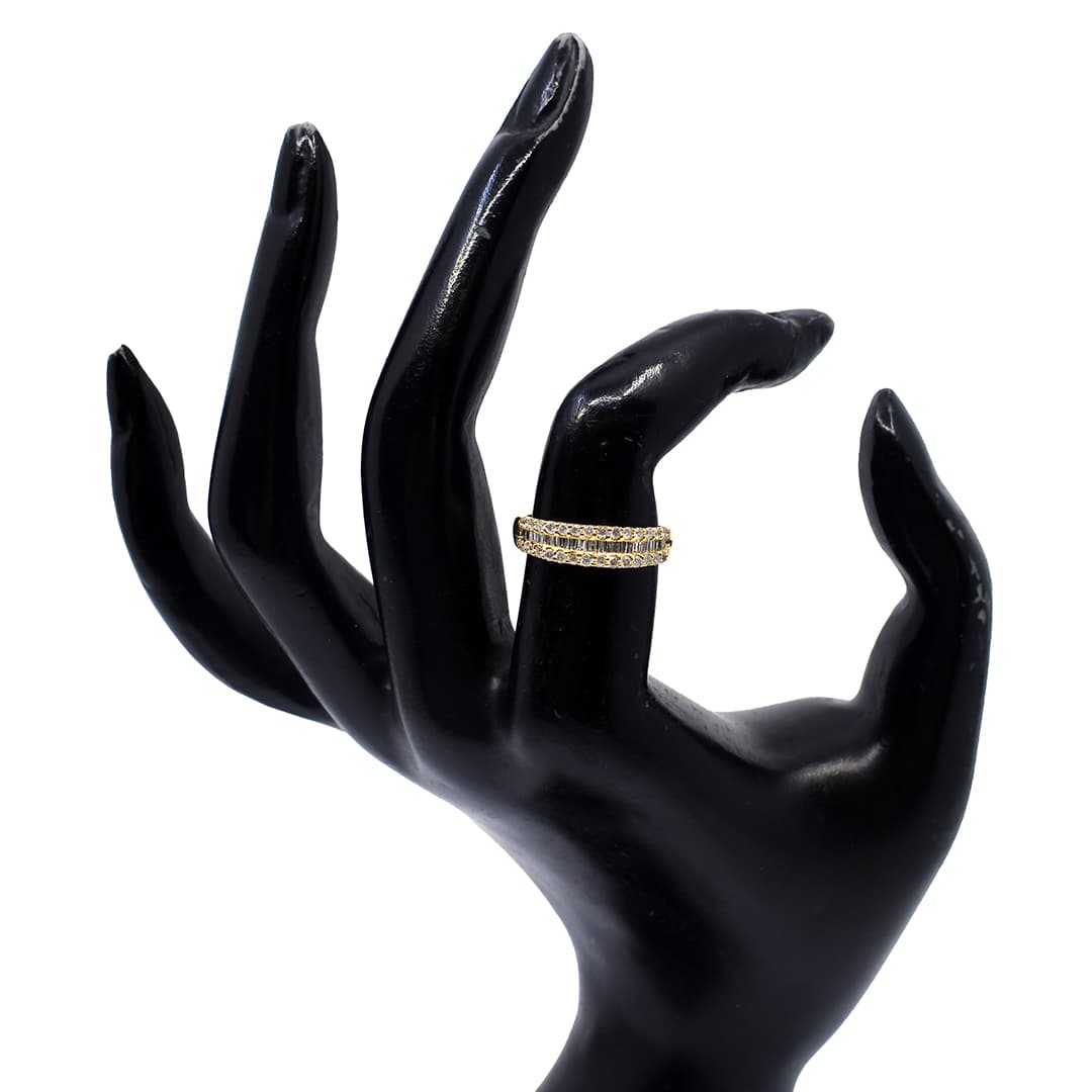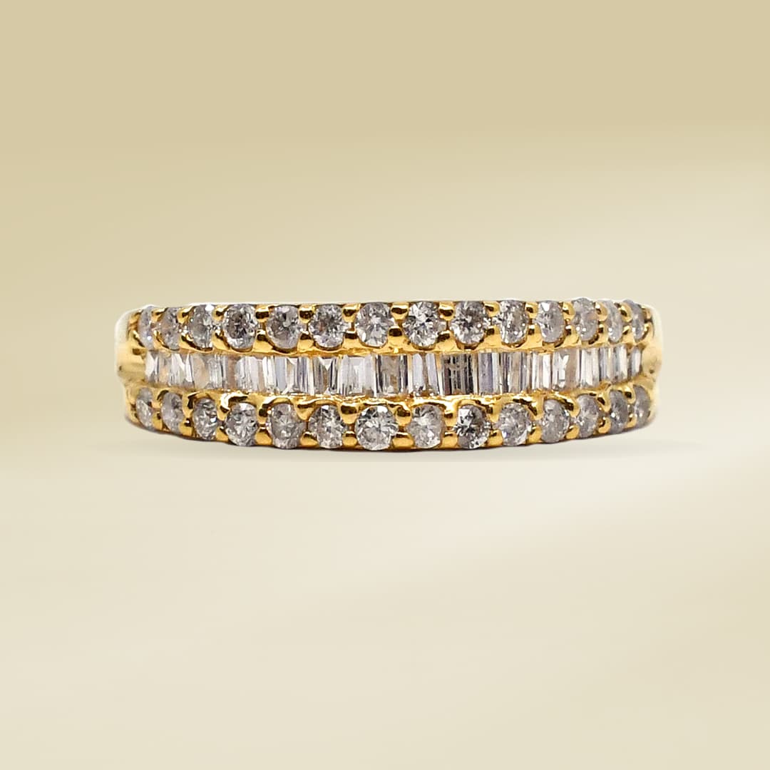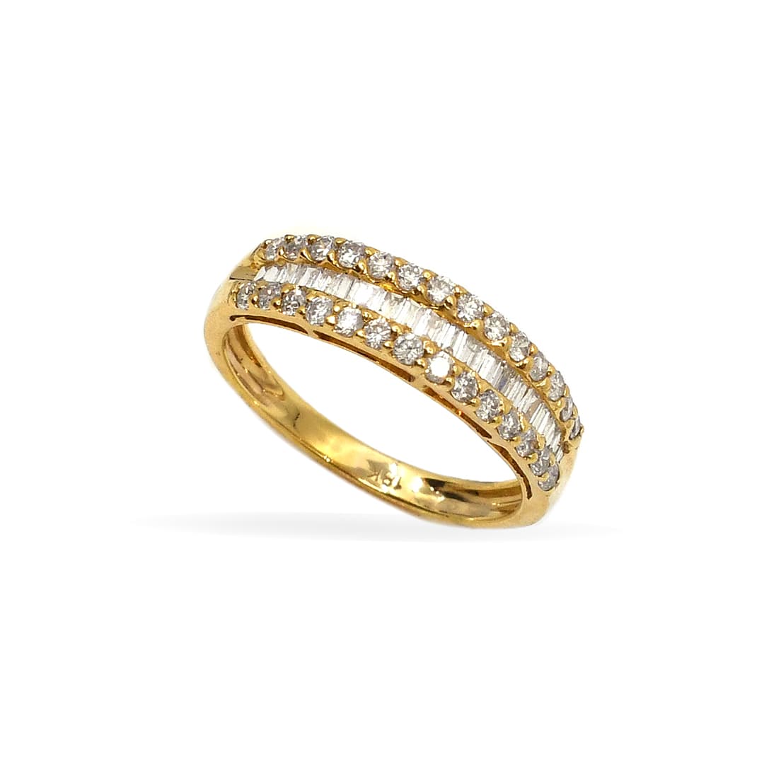 18K Yellow Gold Ladies’ Ring with Baguette and Round Cut, Pave Setting Diamonds