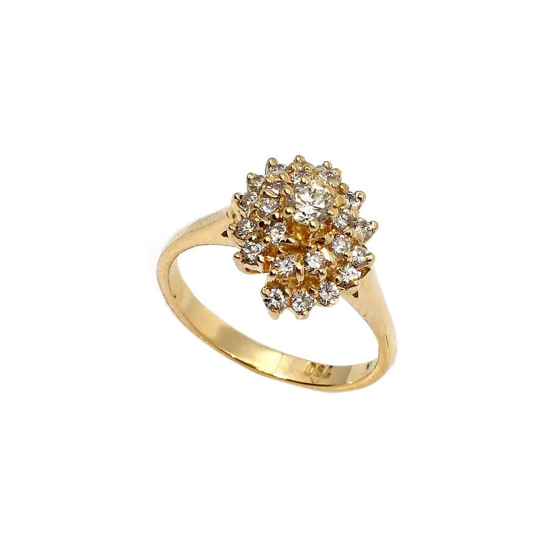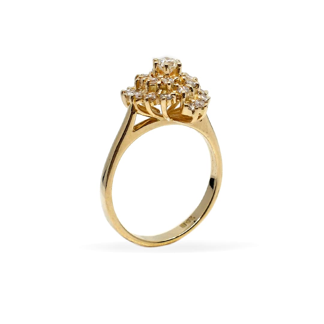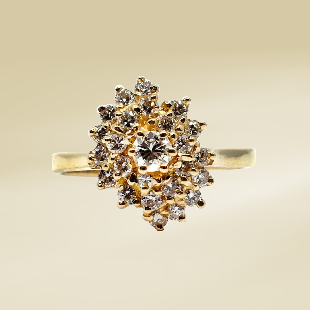 18K Yellow Gold Ladies’ Ring with Round Cut, cluster Diamonds