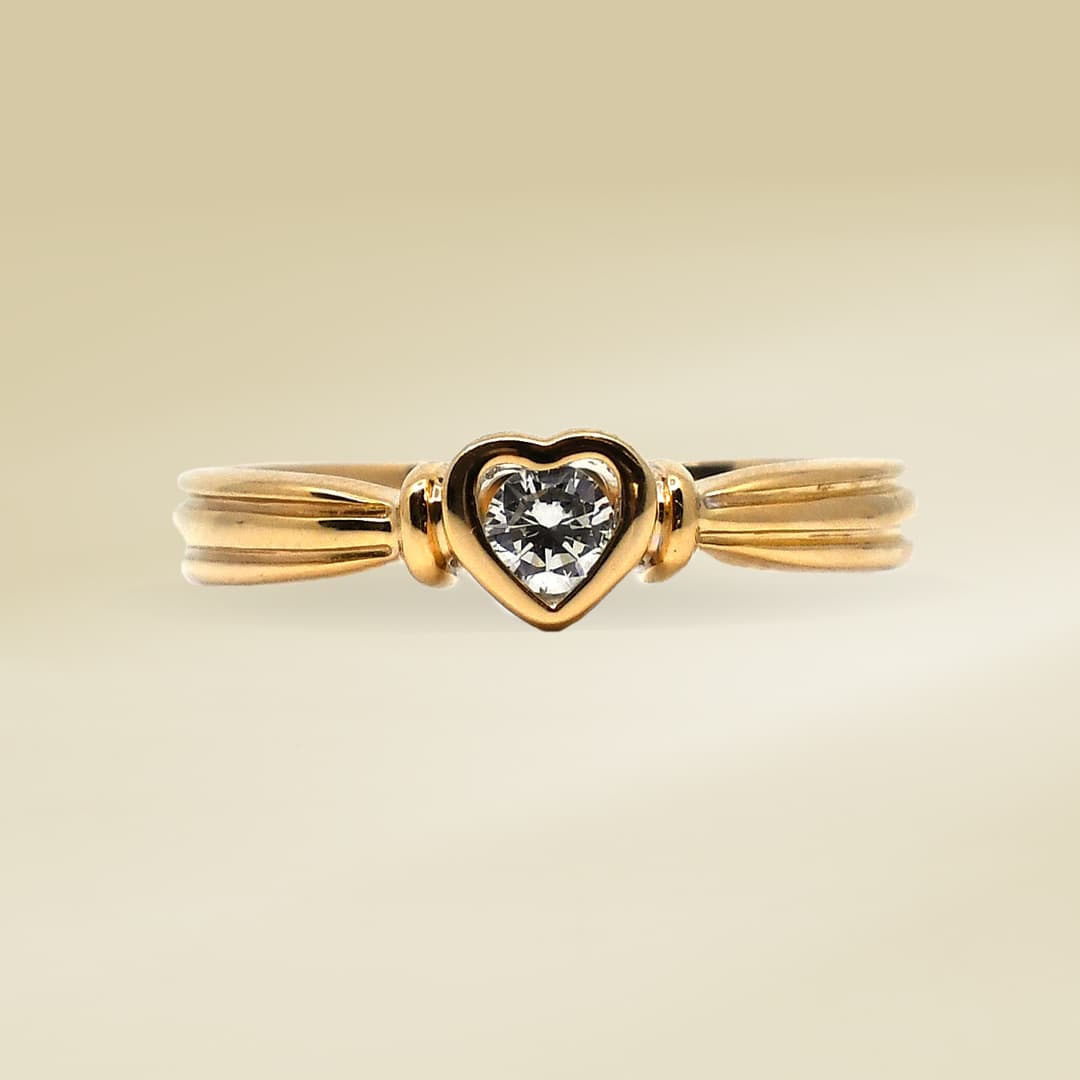 18K Yellow Gold Ladies’ Ring with Round Cut, Single Stone Diamonds