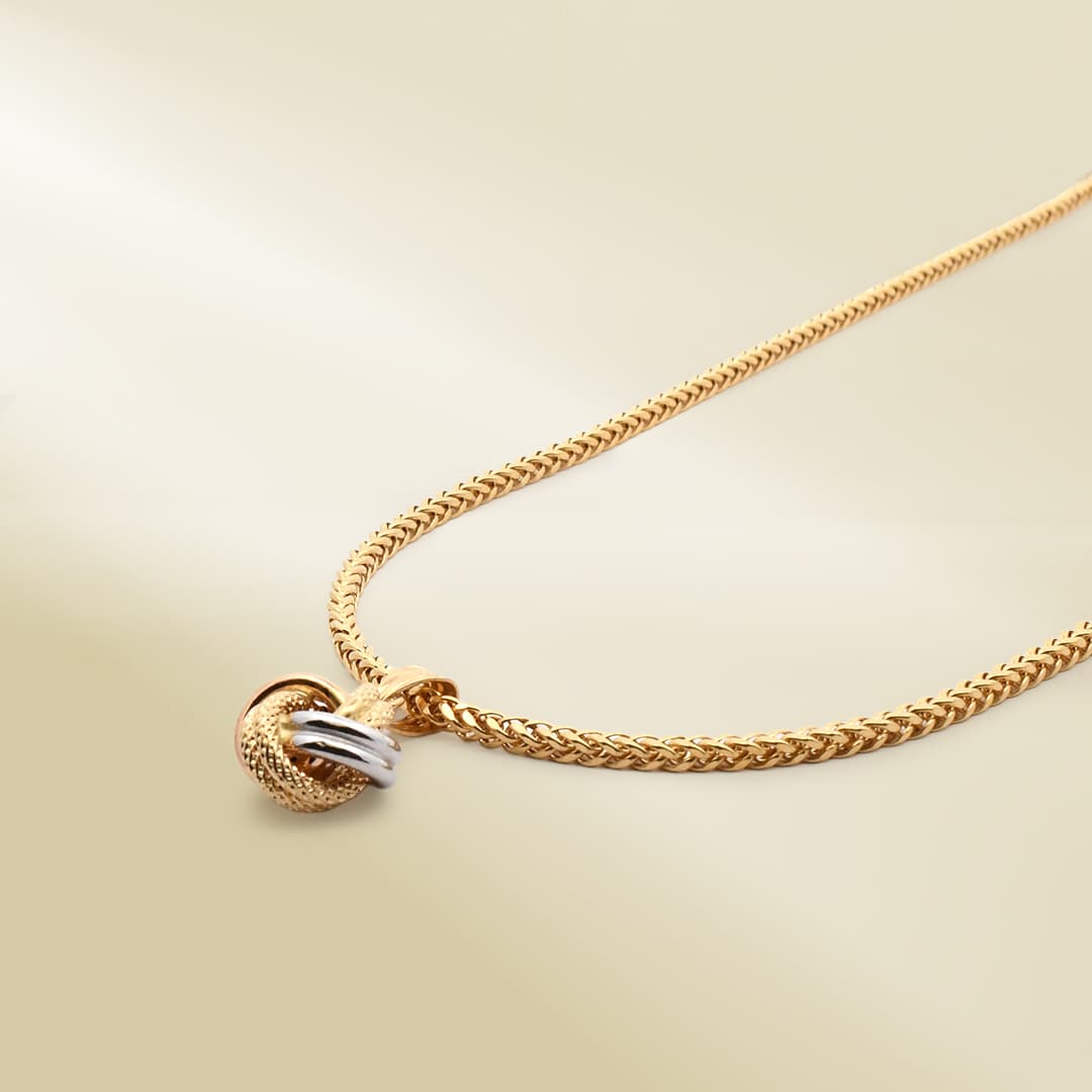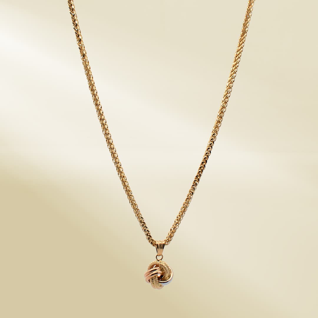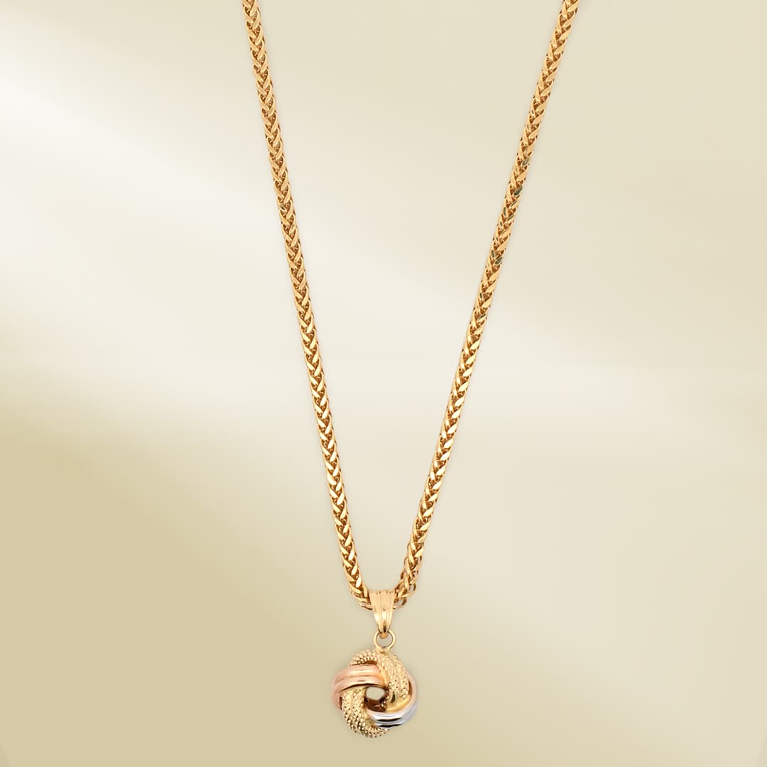 18K Yellow Gold Palma Chain Necklace with Tri-Color Knot Pendant