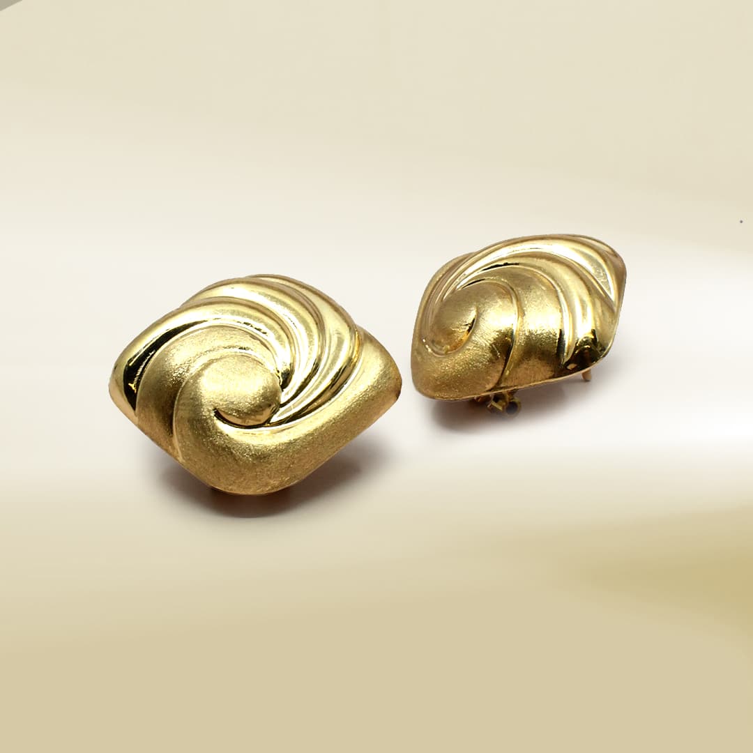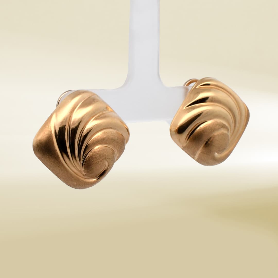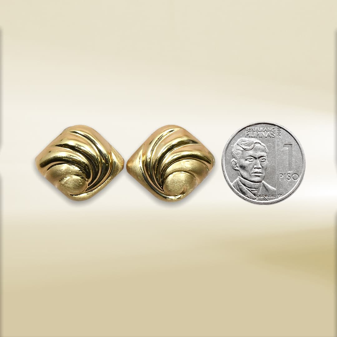 18K Yellow Gold Square Shape Swirl Design Earrings