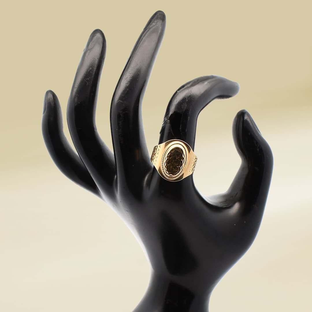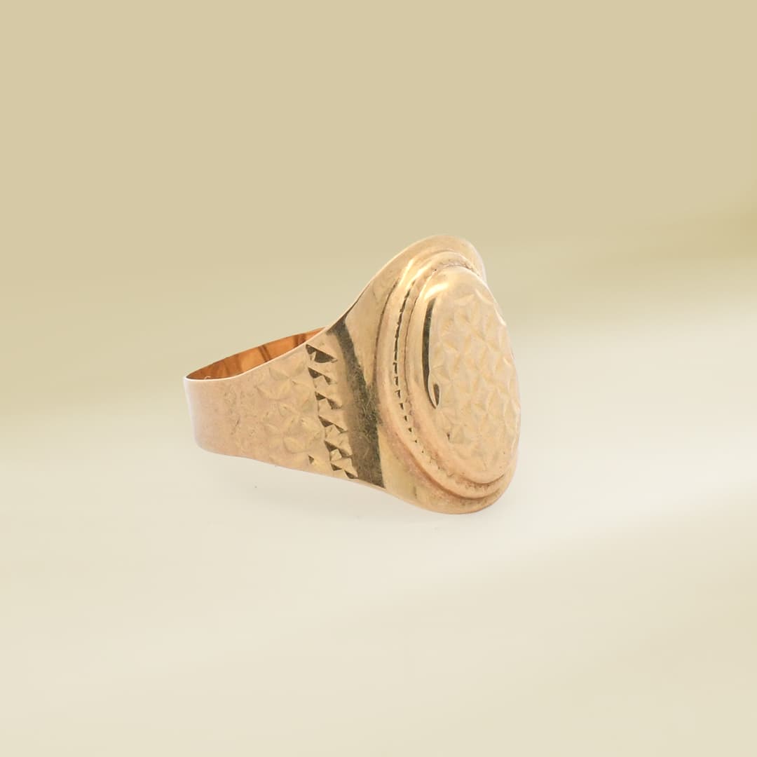18K Yellow Gold Textured Signet Design Ladies’ Ring