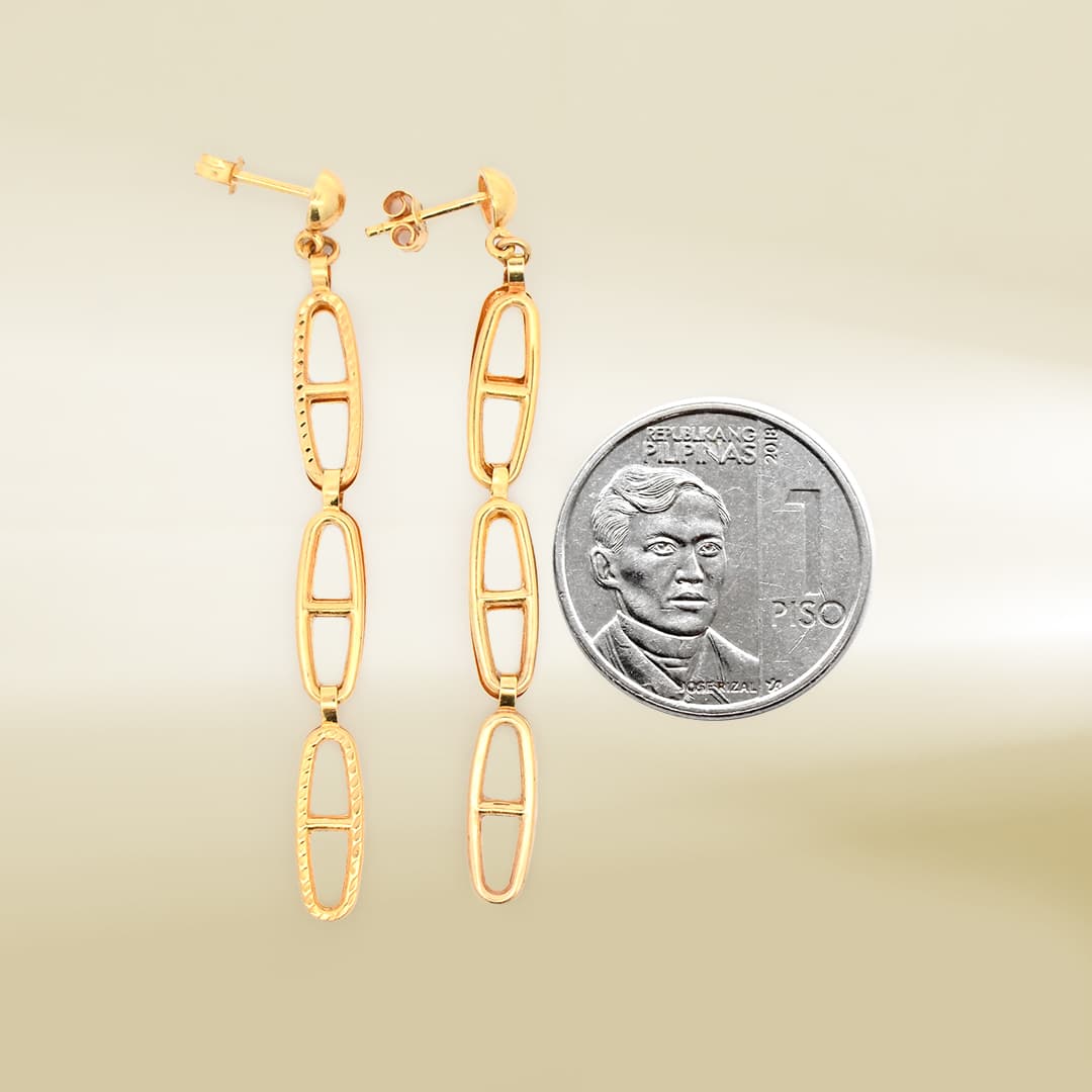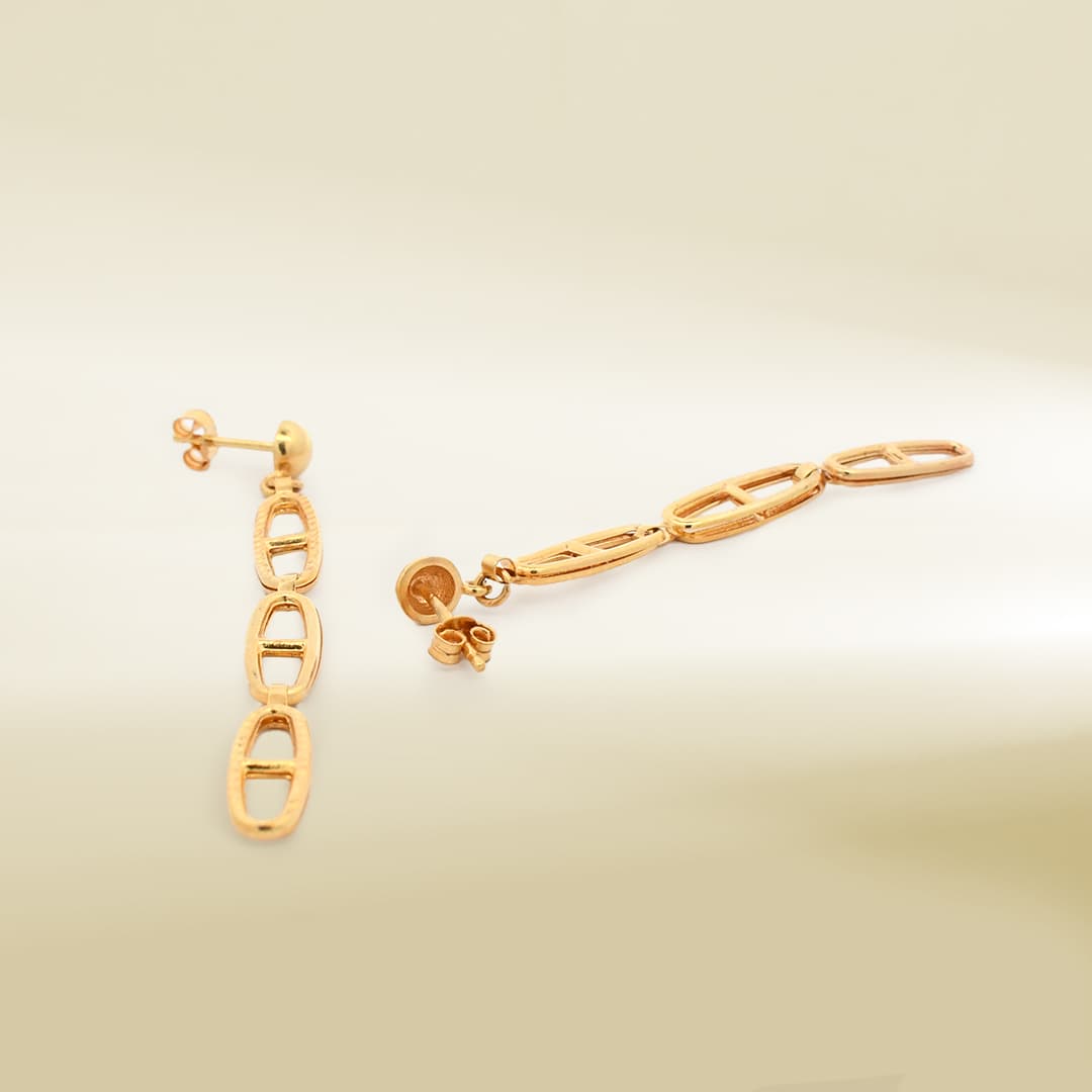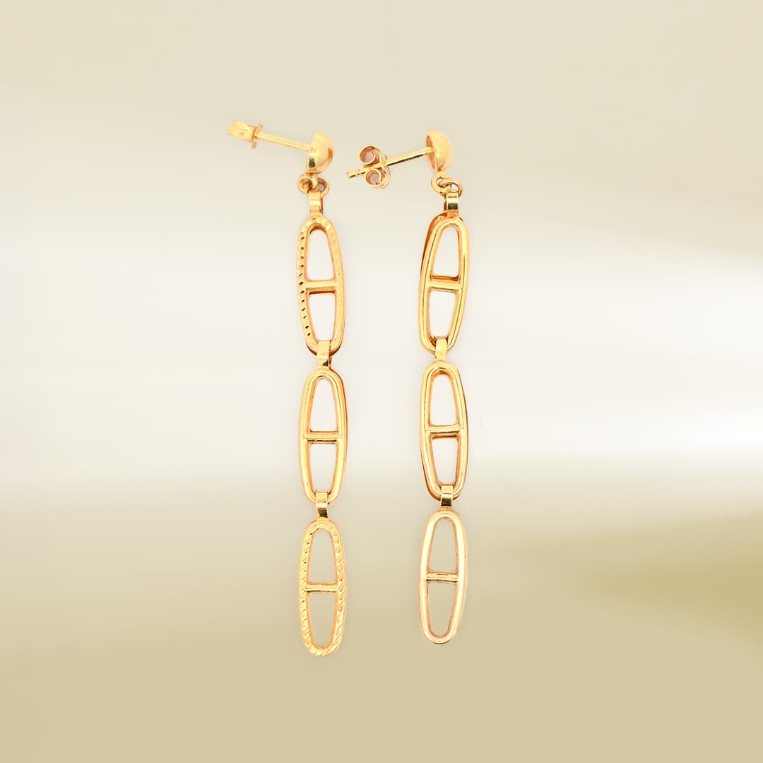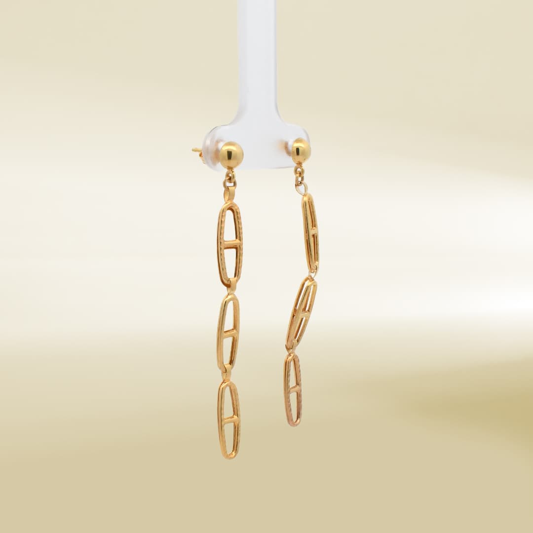 18K Yellow Gold Triple Link Drop Earrings