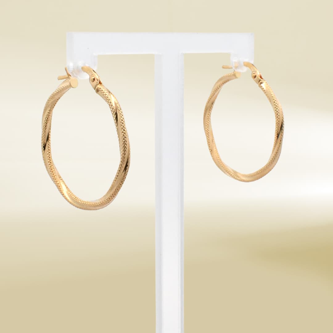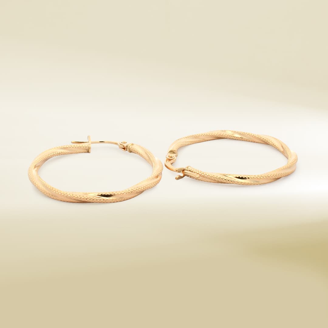 18K Yellow Gold Twisted Hoop Earrings